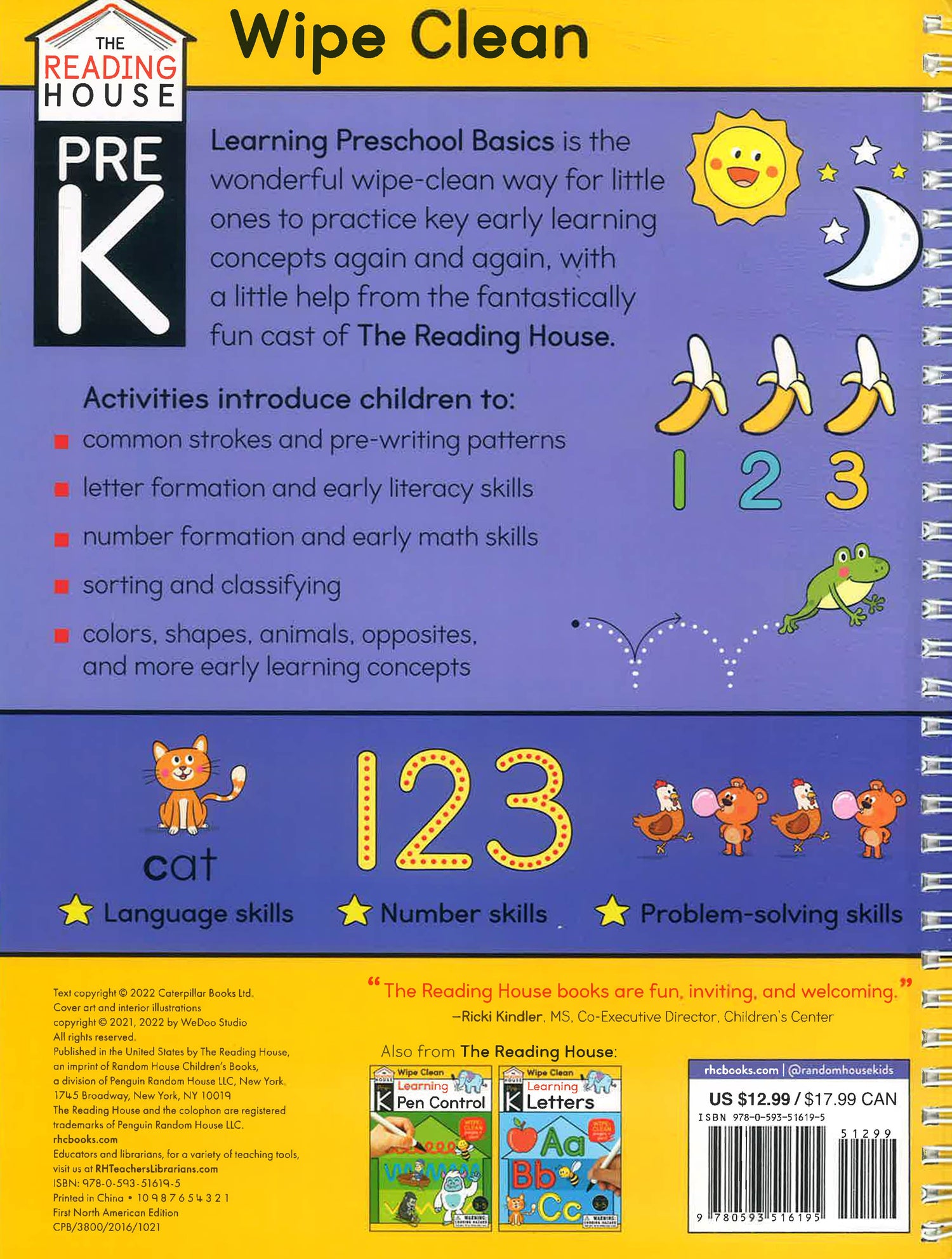 Also available from the Reading House: Learning Letters (Pre-K Wipe Clean Workbook) and Learning Pen Control (Pre-K Wipe Clean Workbook)
