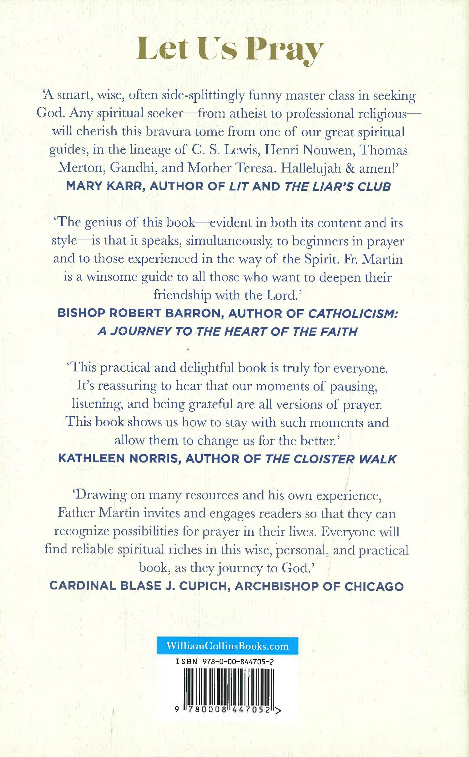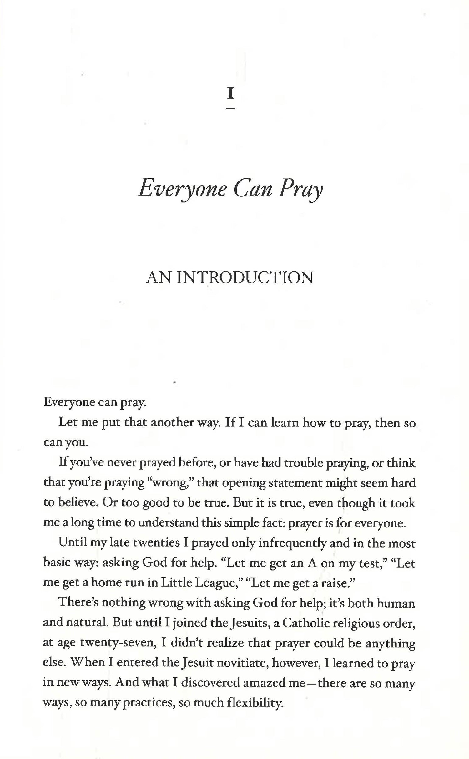 A trusted guide walking beside us as we navigate our unique spiritual paths, Martin lays out the different styles and traditions of prayer throughout Christian history and invites us to experiment and discover which works best to feed our soul and build intimacy with our Creator. Father Martin makes clear there is not one secret formula for praying. But like any relationship, each person can discover the best style for building an intimate relationship with God, regardless of religion or denomination. Prayer, he teaches us, is open and accessible to anyone willing to open their heart.