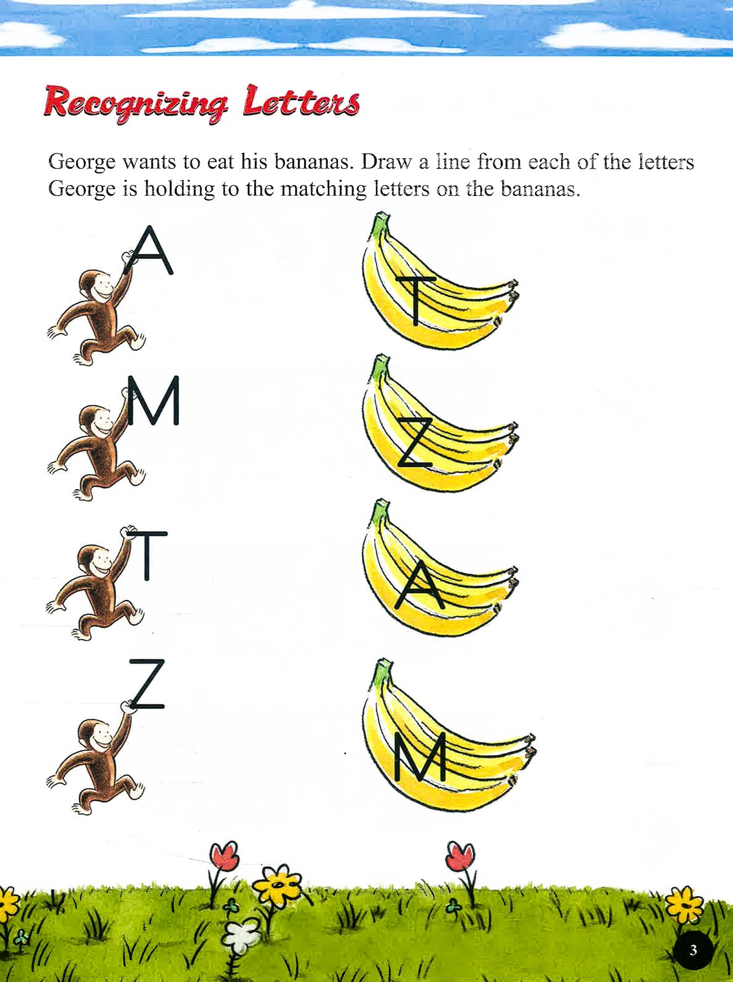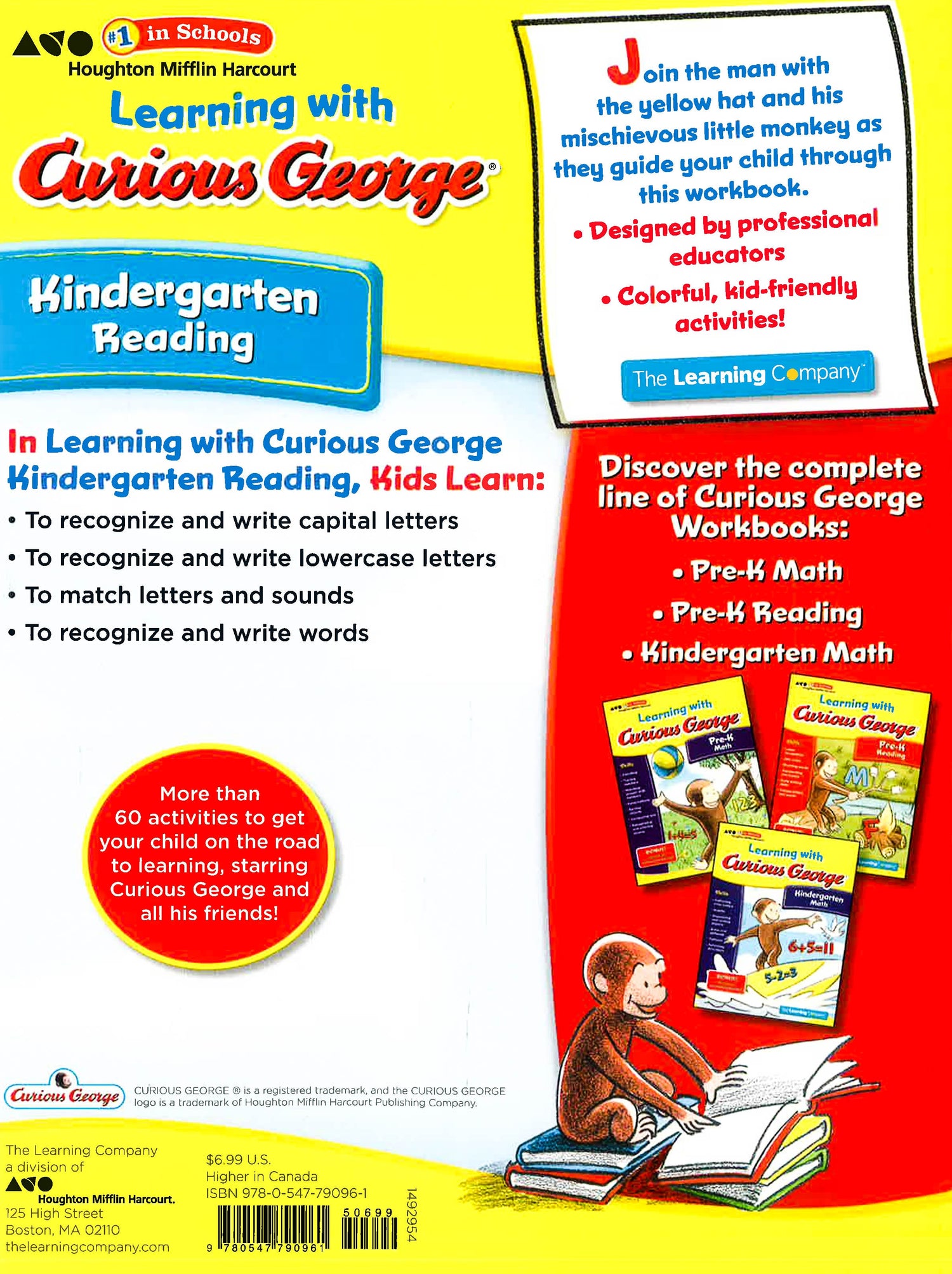 The Learning with Curious George Kindergarten Reading workbook teaches children: