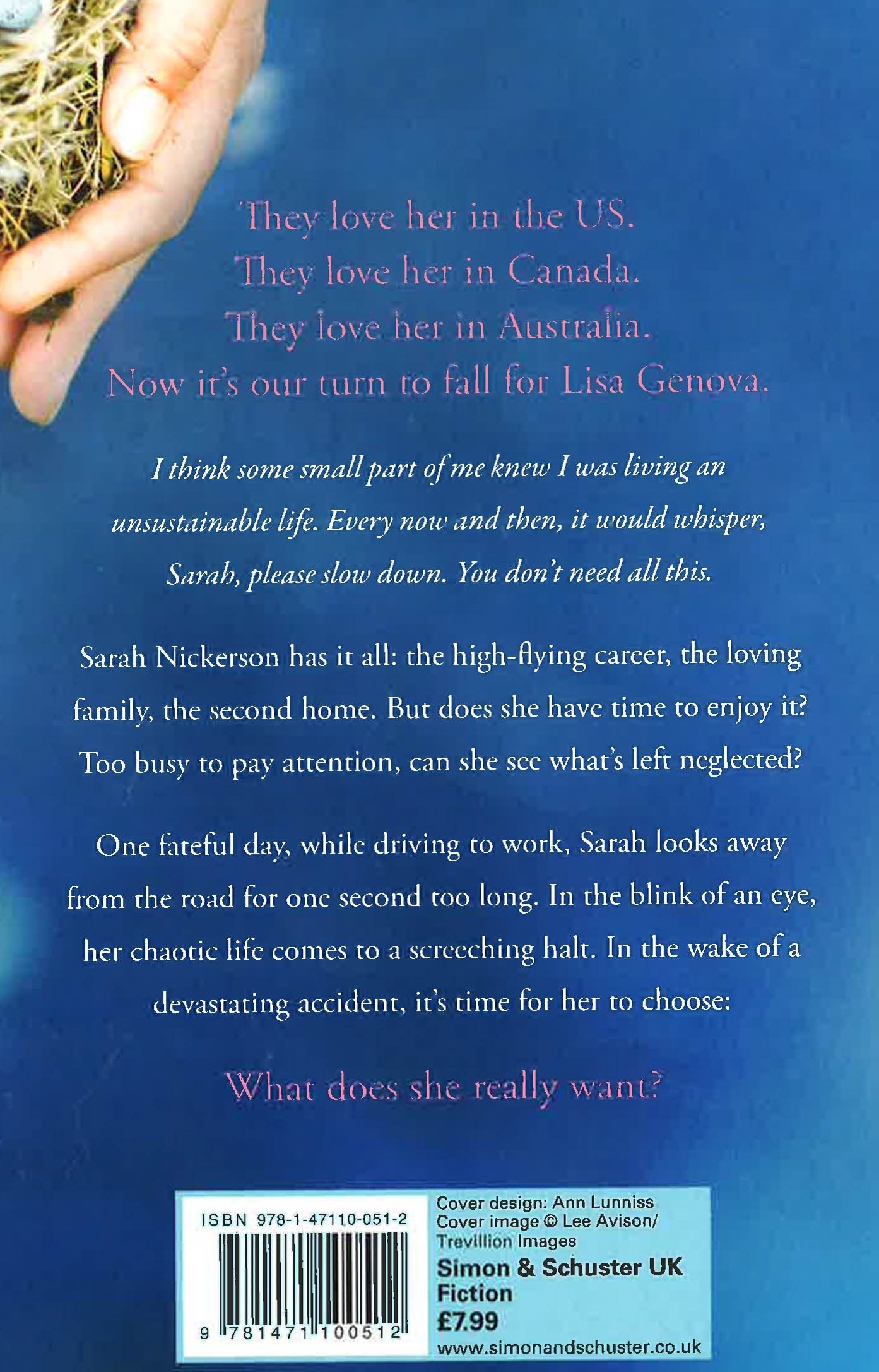 From neuroscientist and bestselling author Lisa Genova comes a story of resilience in the face of a devastating diagnosis. After a car crash leaves a vibrant mother in her thirties with a traumatic brain disorder called “left neglect,” she learns what truly matters most in life.