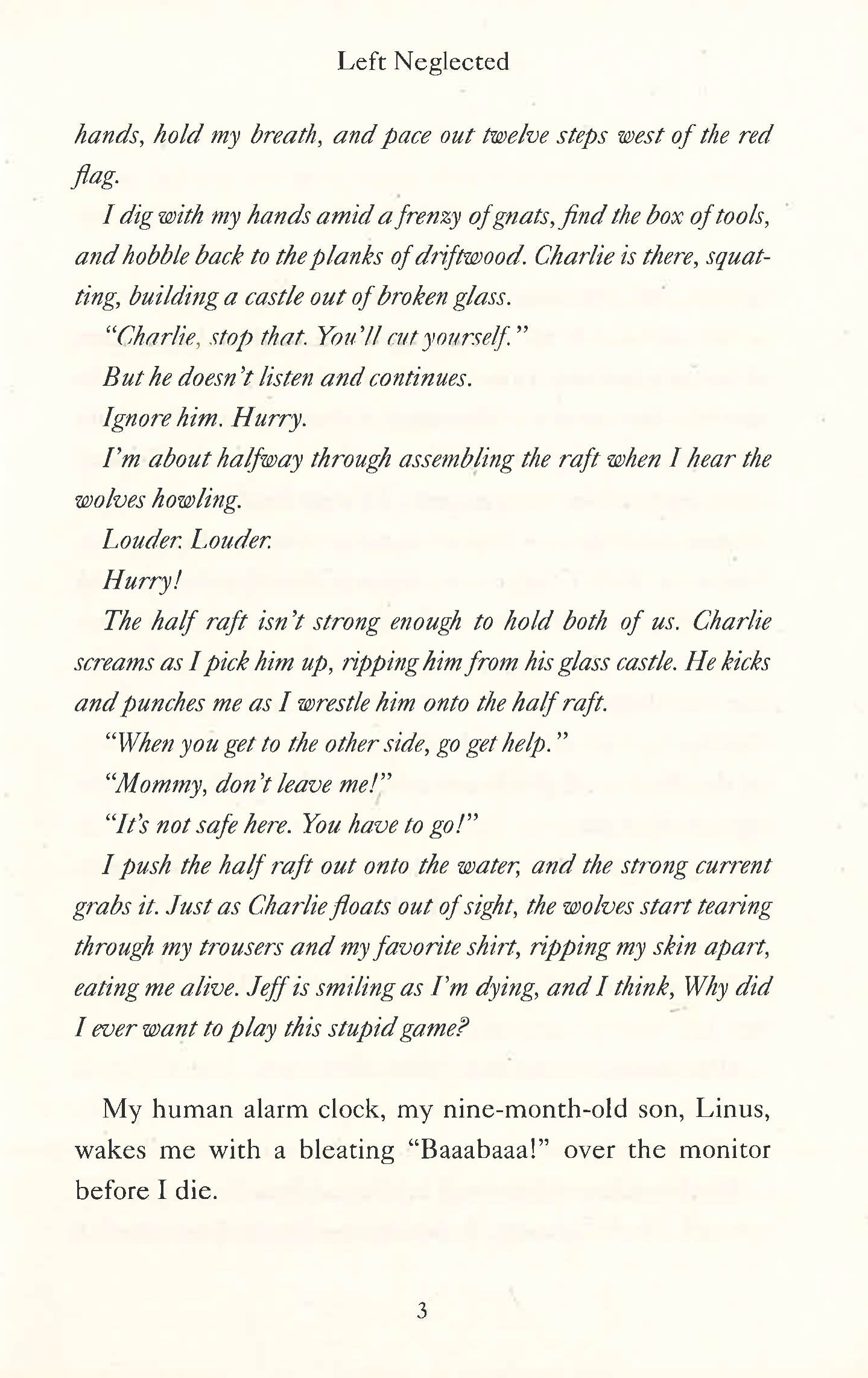 Sarah Nickerson, like any other working mom, is busy trying to have it all. One morning while racing to work and distracted by her cell phone, she looks away from the road for one second too long. In that blink of an eye, all the rapidly moving parts of her over-scheduled life come to a screeching halt. After a brain injury steals her awareness of everything on her left side, Sarah must retrain her mind to perceive the world as a whole. In so doing, she also learns how to pay attention to the people and parts of her life that matter most.