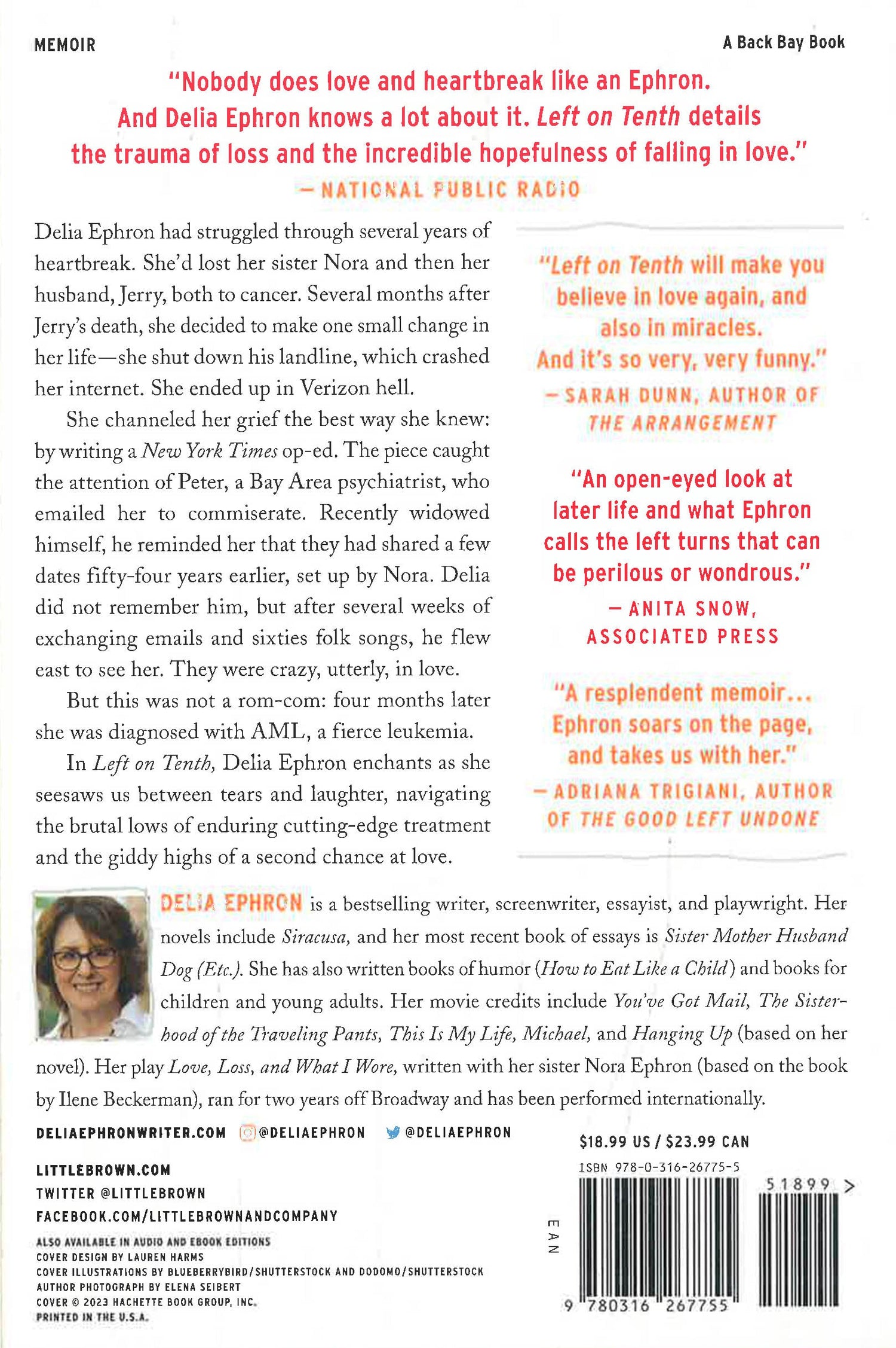 In Left on Tenth, Delia Ephron enchants as she seesaws us between tears and laughter, navigating the suicidal lows of enduring cutting-edge treatment and the giddy highs of a second chance at love. With Peter and her close girlfriends by her side, with startling clarity, warmth, and honesty about facing death, Ephron invites us to join her team of warriors and become believers ourselves.
