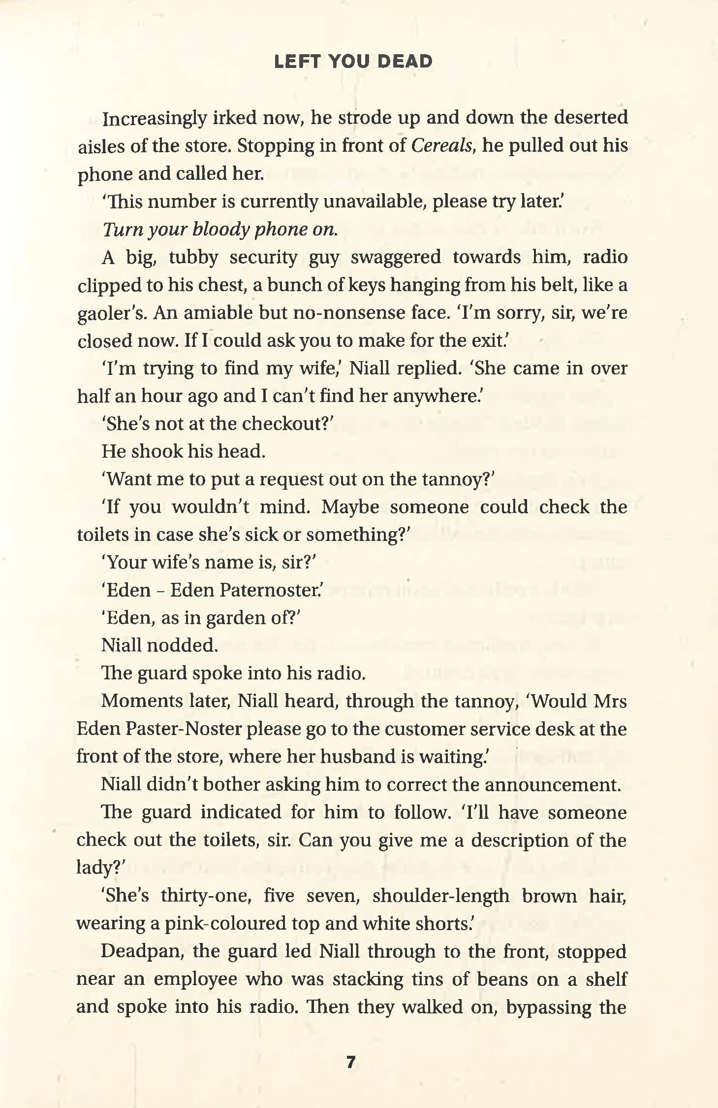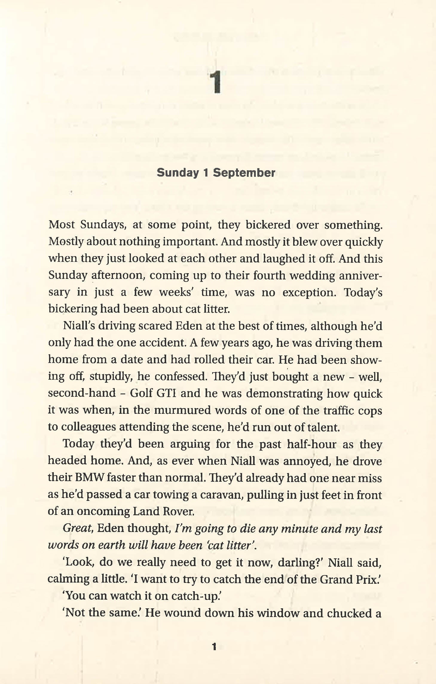 But this Sunday ends differently – because while Niall waits and waits in the car park for Eden to pick up supplies, Eden never returns. She’s not waiting for him at home, and none of their family or friends have heard from her.