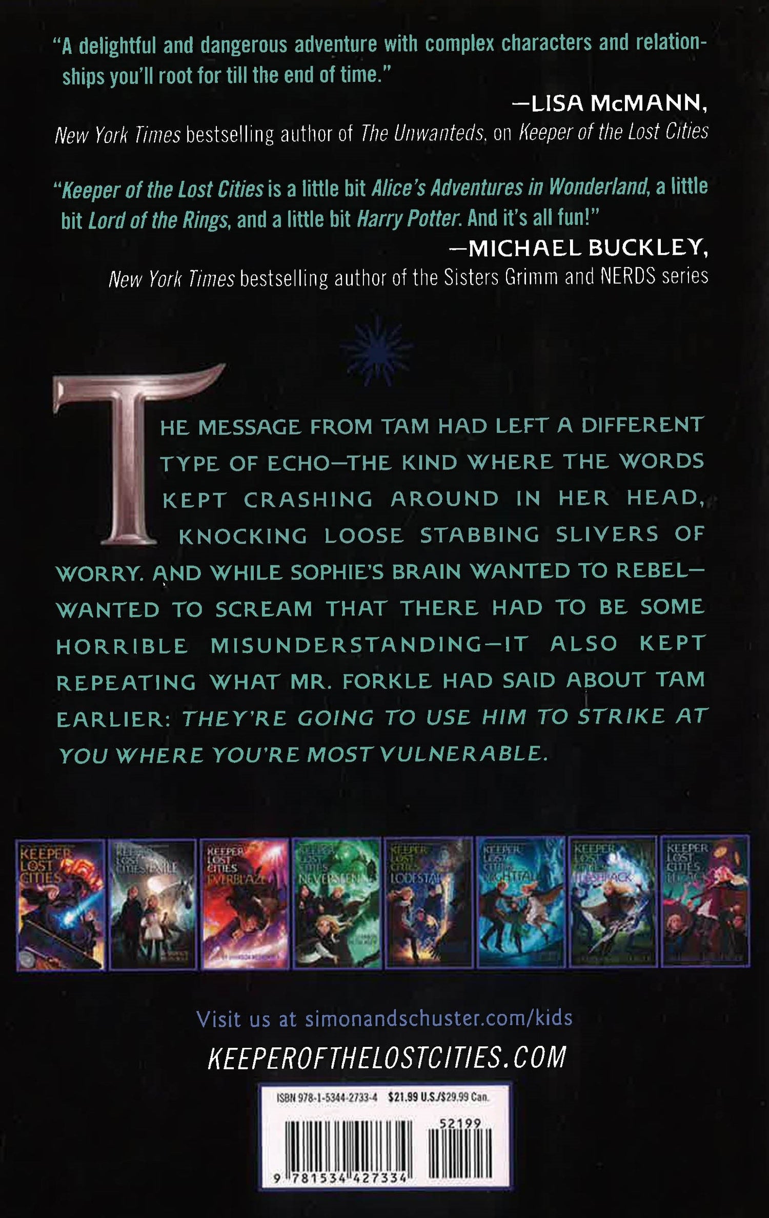 Illusions shatter--and Sophie and her friends face impossible choices--in this astonishing eighth book in the New York Times and USA TODAY bestselling Keeper of the Lost Cities series. Sophie Foster wants answers. But after a lifetime of lies, sometimes the truth is the most dangerous discovery. Even the smallest secret comes with terrifying new responsibilities. And Sophie's not the only one with blank spots in her past, or mysteries surrounding her family. She and her friends are part of something much bigger than they imagined--and their roles have already been chosen for them. Every clue drags them deeper into the conspiracy. Every memory forces them to question everything--especially one another. And the harder they fight, the more the lines blur between friend and enemy.