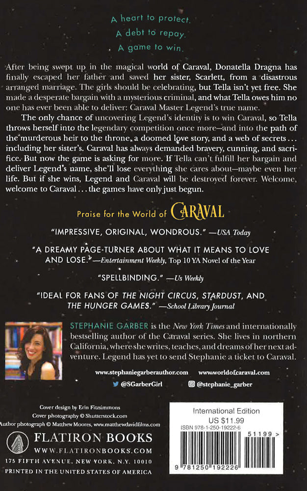 The instant #1 New York Times bestseller! Stephanie Garber's limitless imagination takes flight once more in the colorful, mesmerizing, and immersive sequel to the bestselling breakout debut Caraval... A heart to protect. A debt to repay. A game to win. After being swept up in the magical world of Caraval, Donatella Dragna has finally escaped her father and saved her sister Scarlett from a disastrous arranged marriage. The girls should be celebrating, but Tella isn't yet free. She made a desperate bargain with a mysterious criminal, and what Tella owes him no one has ever been able to deliver: Caraval Master Legend's true name. The only chance of uncovering Legend's identity is to win Caraval, so Tella throws herself into the legendary competition once more-and into the path of the murderous heir to the throne, a doomed love story, and a web of secrets...including her sister's. Caraval has always demanded bravery, cunning, and sacrifice. But now the game is asking for more. If Tella can't fulfill her bargain and deliver Legend's name, she'll lose everything she cares about-maybe even her life. But if she wins, Legend and Caraval will be destroyed forever. Welcome, welcome to Caraval...the games have only just begun.