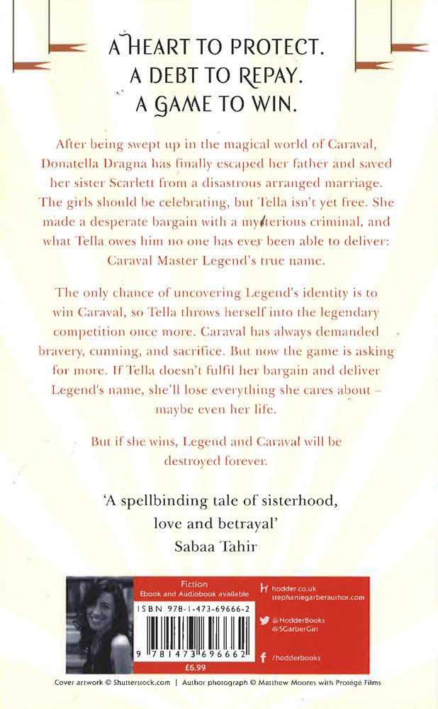 The spellbinding sequel to Sunday Times bestselling Caraval.A heart to protect. A debt to repay. A game to win.The stunning, internationally bestselling sequel to Caraval'Extravagantly imaginative and enchanting . . . Pure magic and escapism' Cecelia AhernAfter being swept up in the magical world of Caraval, Donatella Dragna has finally escaped her father and saved her sister Scarlett from a disastrous arranged marriage. The girls should be celebrating, but Tella isn't yet free. She made a desperate bargain with a mysterious criminal, and what Tella owes him no one has ever been able to deliver: Caraval Master Legend's true name.The only chance of uncovering Legend's identity is to win Caraval, so Tella throws herself into the legendary competition once more - and into the path of the murderous heir to the throne, a doomed love story, and a web of secrets . . . including her sister's. Caraval has always demanded bravery, cunning, and sacrifice. But now the game is asking for more. If Tella can't fulfill her bargain and deliver Legend's name, she'll lose everything she cares about - maybe even her life. But if she wins, Legend and Caraval will be destroyed forever.Welcome, welcome to Caraval . . . the games have only just begun.***************Praise for Caraval:'I love this novel . . . It's a thing of beauty and the stuff of dreams' Cecelia Ahern'Immersive and engaging . . . destined to capture imaginations' Kirkus'An enchanting carnival of dreams and nightmares . . . beautifully and vividly written' SciFi Now'Stephanie Garber spins a spellbinding tale of sisterhood, love and betrayal . . . I lost myself in the dangerous, enchanting world she created - and never wanted to come out' Sabaa Tahir***************What readers have said about Caraval:'An exceptional read, to the point where I felt I couldn't put it down' 'Very rare to find a book this wonderful!''One of the most gripping books I've ever read''Magical, mysterious, moving . . . a clever page-turner which swept me up and dropped me right in the middle of Caraval'