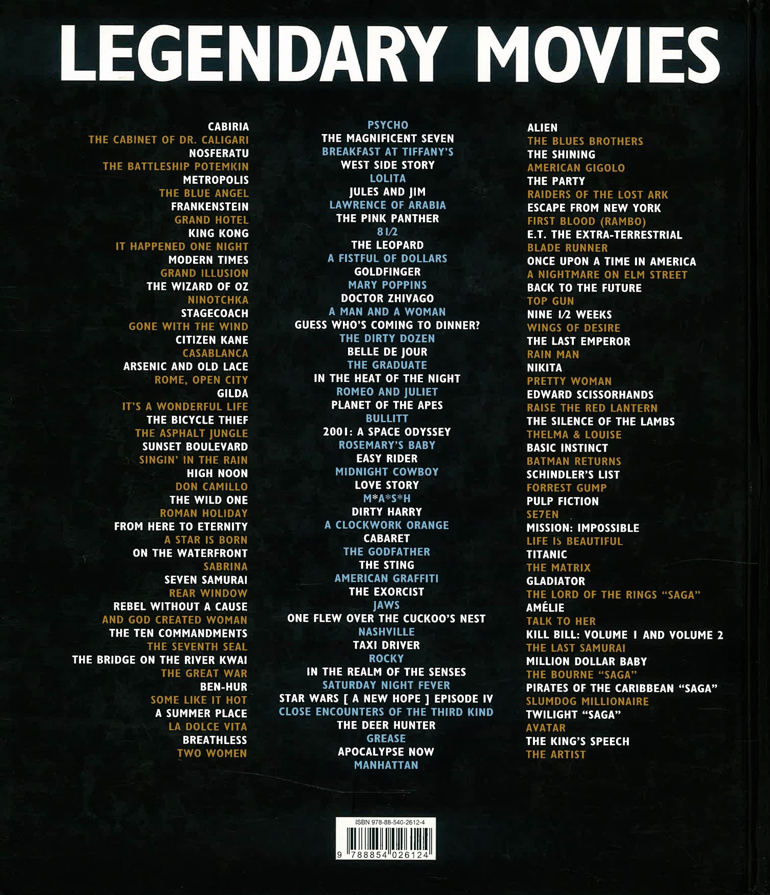 "140 movies chosen from among the most beautiful, the most imaginative, the most surprising, and also the most successful in the history of cinema." "140 chapters illustrated with pictures from the original frames. 140 stages of a journey into the fantasy and magic of the movie industry." "As with all selections, the list of titles is subjective, or rather it reflects our considered thoughts; we tried to convey an overall idea, the broadest and most representative possible, of the still relatively short journey of cinema, from silent and black-and-white movies to the present. We did not only search for absolute beauty - we know it is impossible to please everybody. In addition to the movies we selected, there are hundreds of other films that deserved to be mentioned." "This volume is neither going to be an encyclopedia nor a catalogue, it will provide a panoramic view of the history of cinema, discussing all the components of the Seventh Art: from absolute masterpieces to blockbusters that defined an era, creating trends and fashions. Works that, for many reasons, have earned their place in the common memory of millions. Therefore commercial films are also included, such as the films that changed the course of history, enduring time, and remaining popular from one generation to the next."--BOOK JACKET.