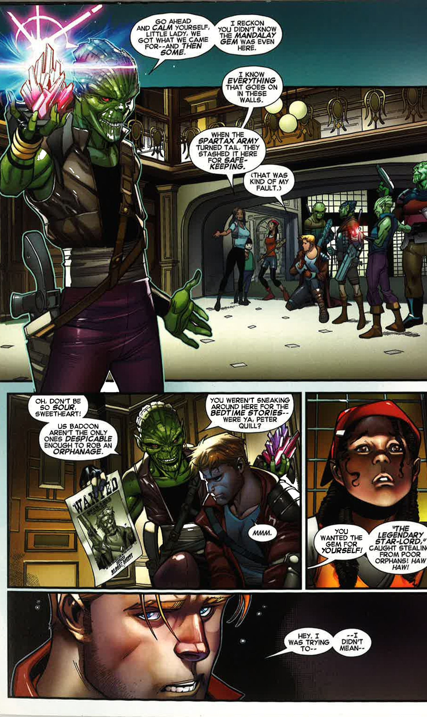Exploding from the pages of Guardians of the Galaxy! Peter Quill battles the Badoon, fights to save an orphanage, and still finds time to flirt with the X-Men's Kitty Pryde - all in a day's work for the legendary Star-Lord! But when Peter is captured by a bounty hunter with a strange connection to his past, can the two make amends before he's fed to a giant alien? Sharing a Badoon jail cell with a criminal and a child isn't exactly Peter's idea of a good time...luckily, he's got an ace named Kitty up his sleeve. But Star-Lord soon encounters the all-powerful Titan responsible for so much mayhem in his life: Thanos! It's the battle to end all battles, but can Star-Lord possibly get out alive?!