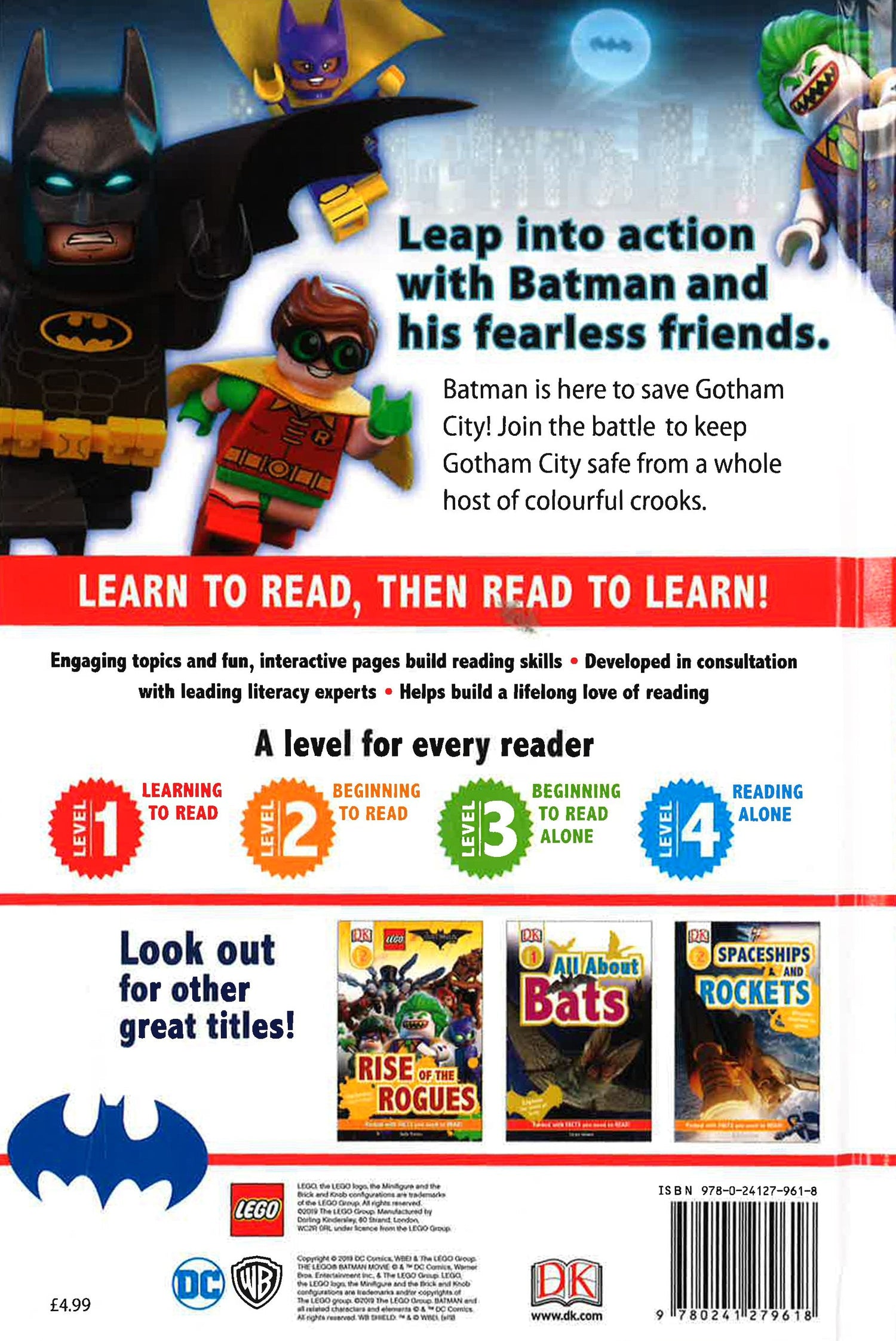 Get ready for an adventure with the coolest Super Hero around! In this fantastic LEGO (R) book for children learning to read, follow Batman (TM) as he saves Gotham City from the hands of The Joker. Learn all about his friends Robin and Batgirl and how they help him save the day. What are some of Batman's most amazing vehicles? Who is the Joker and what does he want? Will Batman learn to work with his friends in time to defeat the bad guys? Find out all this and more in The LEGO (R) BATMAN (TM) MOVIE Team Batman. Featuring incredible LEGO Batman Movie sets and minifigures, fans will be swept up in a fantastic adventure and become confident readers at the same time. Reading has never been more awesome!LEGO, the LEGO logo, the Brick and Knob configuration and the Minifigure are trademarks of the LEGO Group. (c) 2017 The LEGO Group. Produced by Dorling Kindersley under license from the LEGO Group.THE LEGO BATMAN (TM) MOVIE (c) The LEGO Group & Warner Bros Entertainment Inc. BATMAN: TM & (c) DC Comics. (c) Warner Bros. Entertainment Inc.(s17)