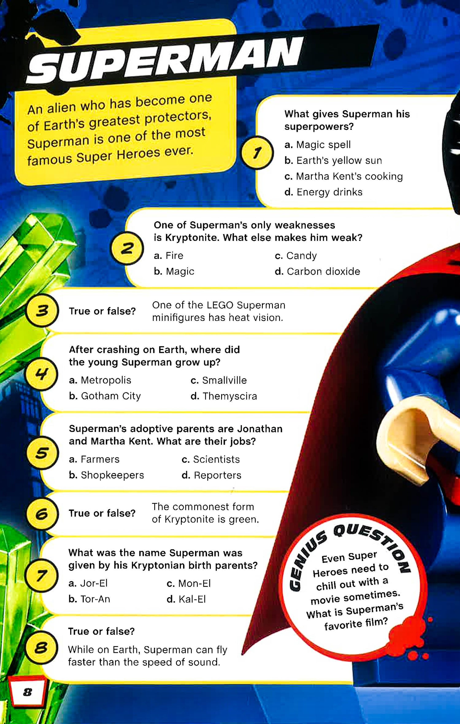 This fun LEGO® DC Super Heroes trivia quiz book is packed full of questions about your favorite LEGO DC Super Heroes characters, including Batman, Wonder Woman, Superman, Harley Quinn and the Joker.