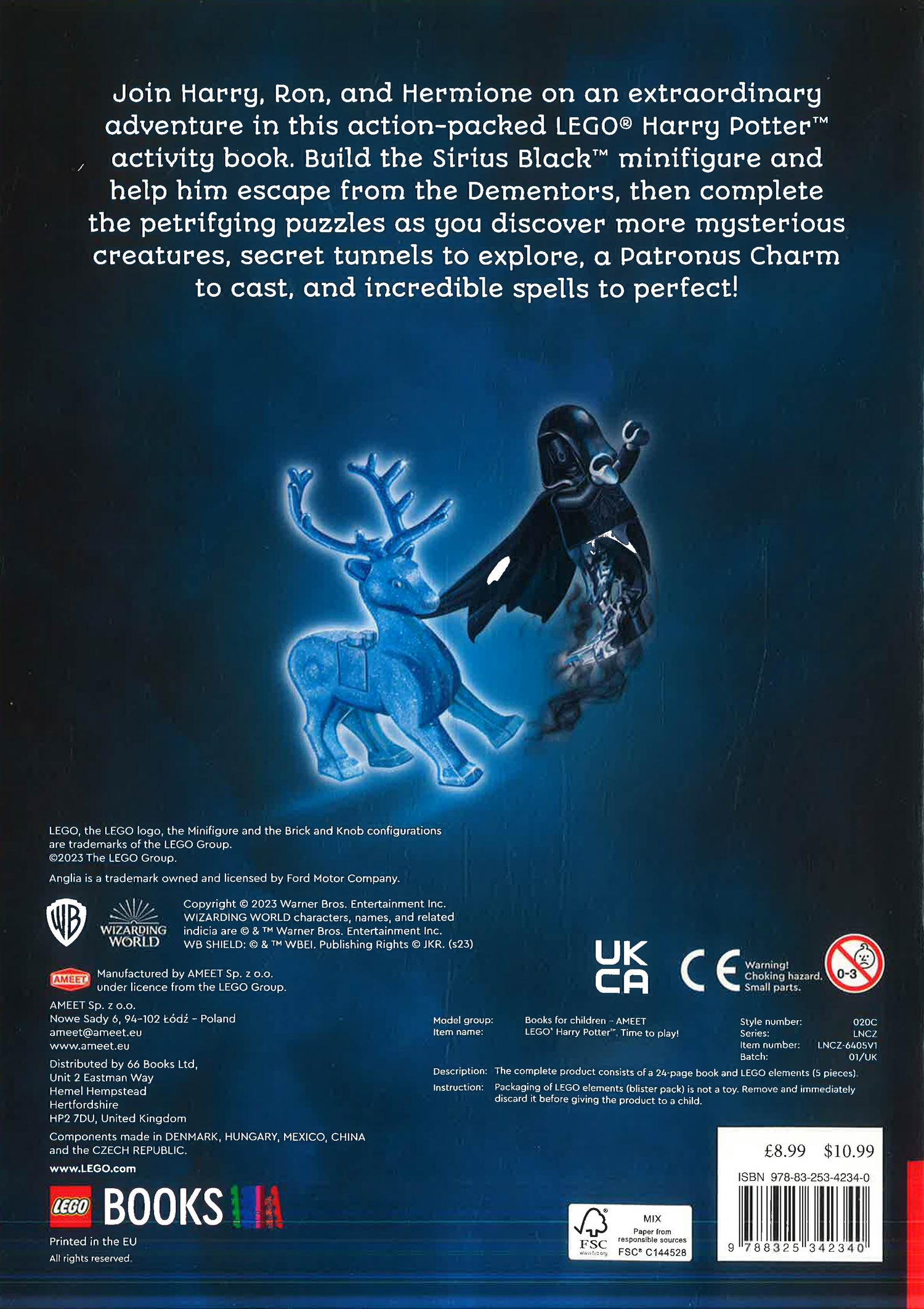 Join Harry, Ron, and Hermione on an extraordinary adventure in this action-packed Lego Harry Potter activity book. Build the Sirius Black minifigure and help him escape from the Dementors, then complete the petrifying puzzles as you discover more mysterious creatures, secret tunnels to explore, a Patronus Charm to cast, and incredible spells to perfect!