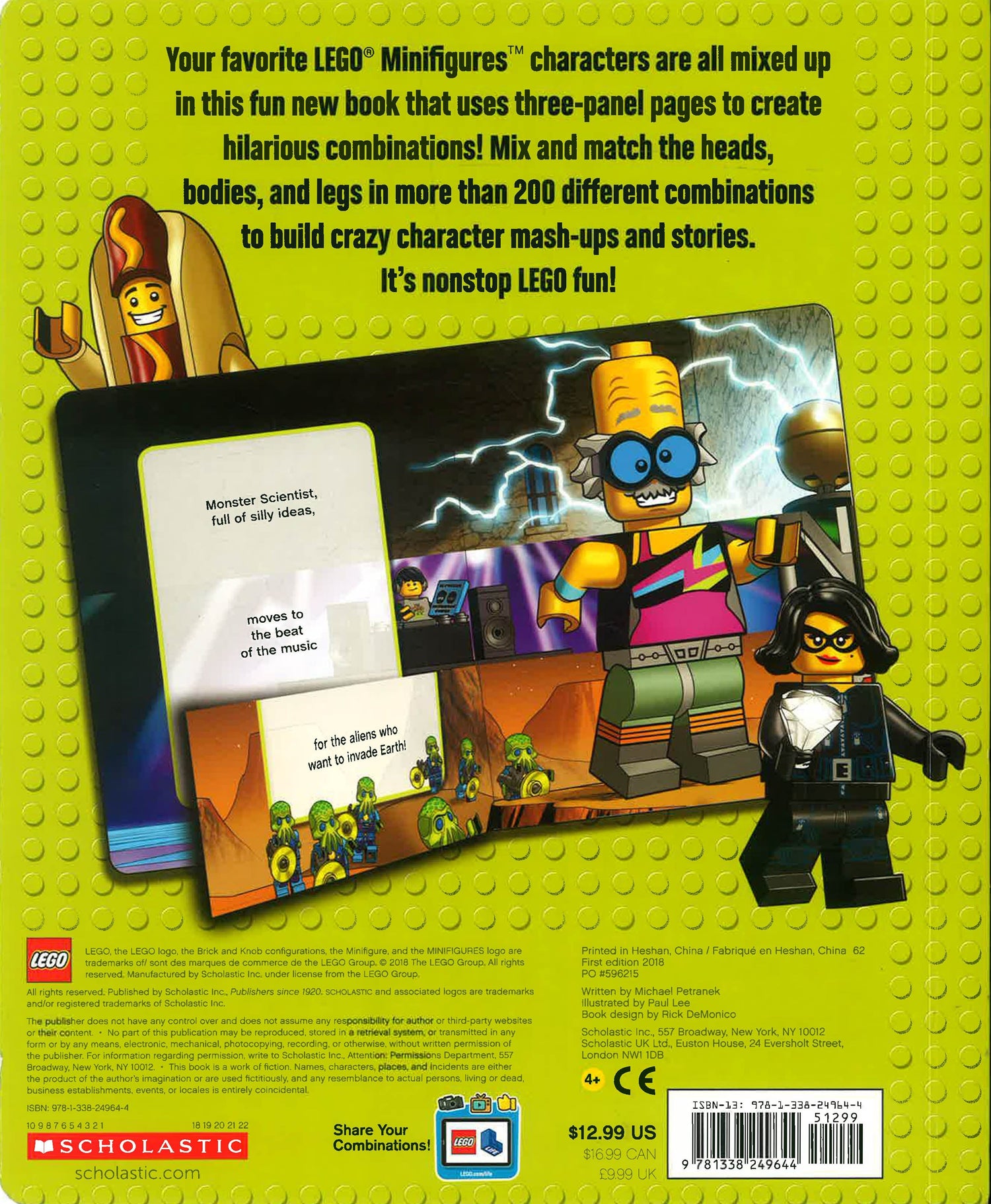 Build crazy mash-ups of LEGO (R) Minifigures (TM) in this fun mix-and-match book! Turn the split pages to mix and match the heads, bodies and legs of your favourite LEGO (R) Minifigures (TM) in more than 200 different combinations. It's part sharksuit man, part mad scientist, part pizza boy and all non-stop LEGO (R) fun! This large full-colour board book format is an ideal gift for any child who loves LEGO simple text - perfect for children learning how to read