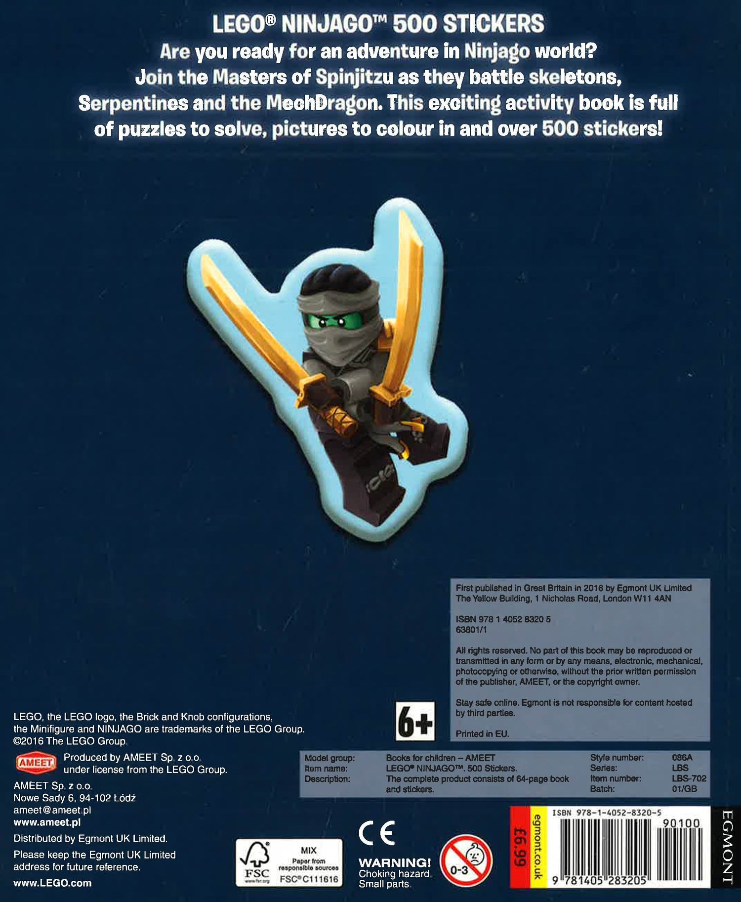 This exciting activity book is full of puzzles to solve, pictures to colour in and over 500 reusable stickers! Enjoy completing the activities and pasting the stickers as you help the Ninjago in their missions. Then when you've finished, peel off the stickers and past them again wherever you want!