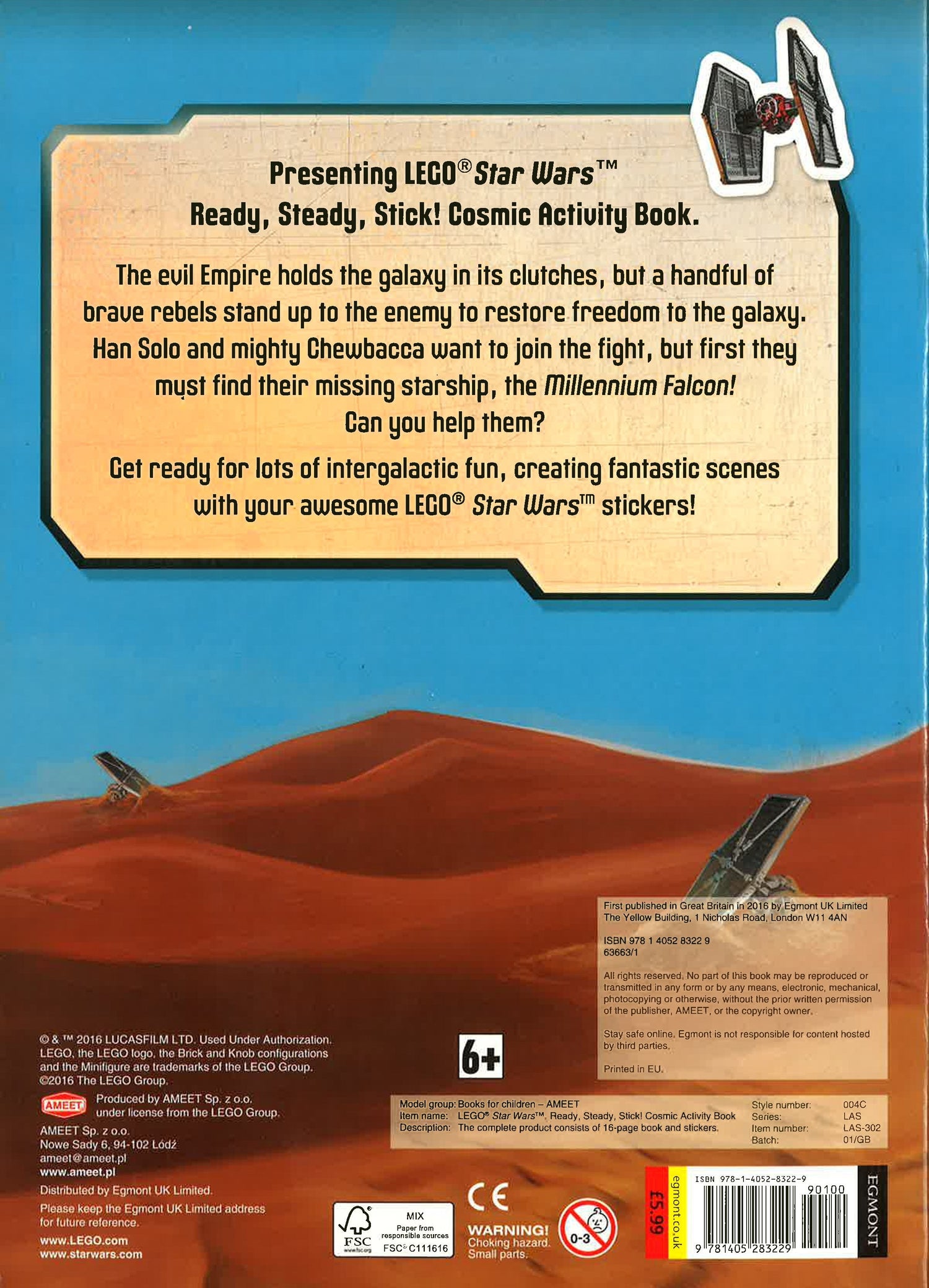 Discover a galaxy full of adventure with LEGO Star Wars ! Join Han Solo, Chewbacca, Luke, Princess Leia, R2-D2, C-3PO and the rest of the Star Wars gang in this LEGO Star Wars book packed full of exciting activities and over 180 reusable stickers! The evil Empire holds the galaxy in ints clutches, but a handful of brave rebels stand up to the enemy to restore freedom to the galaxy. Han Solo and mighty Chewbacca want to join the fight, but first they must find their missing starship, Millennium Falcon! Can you help them? You'll have lots of intergalactic fun creating fantastic scenes using the awesome reusable LEGO Star Wars stickers! When you're ready for even more action-packed stories and activities from a galaxy far, far away.