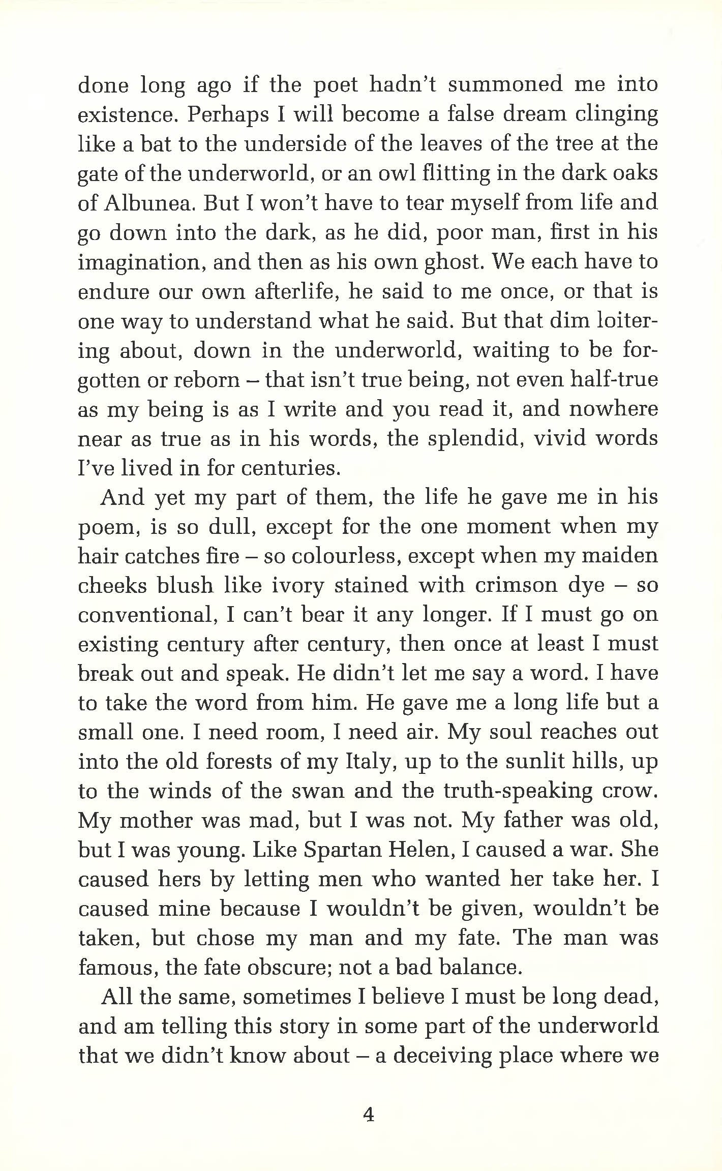 'Like Spartan Helen, I caused a war. She caused hers by letting men who wanted her take her. I caused mine because I wouldn't be given, wouldn't be taken, but chose my man and my fate. The man was famous, the fate obscure; not a bad balance.'