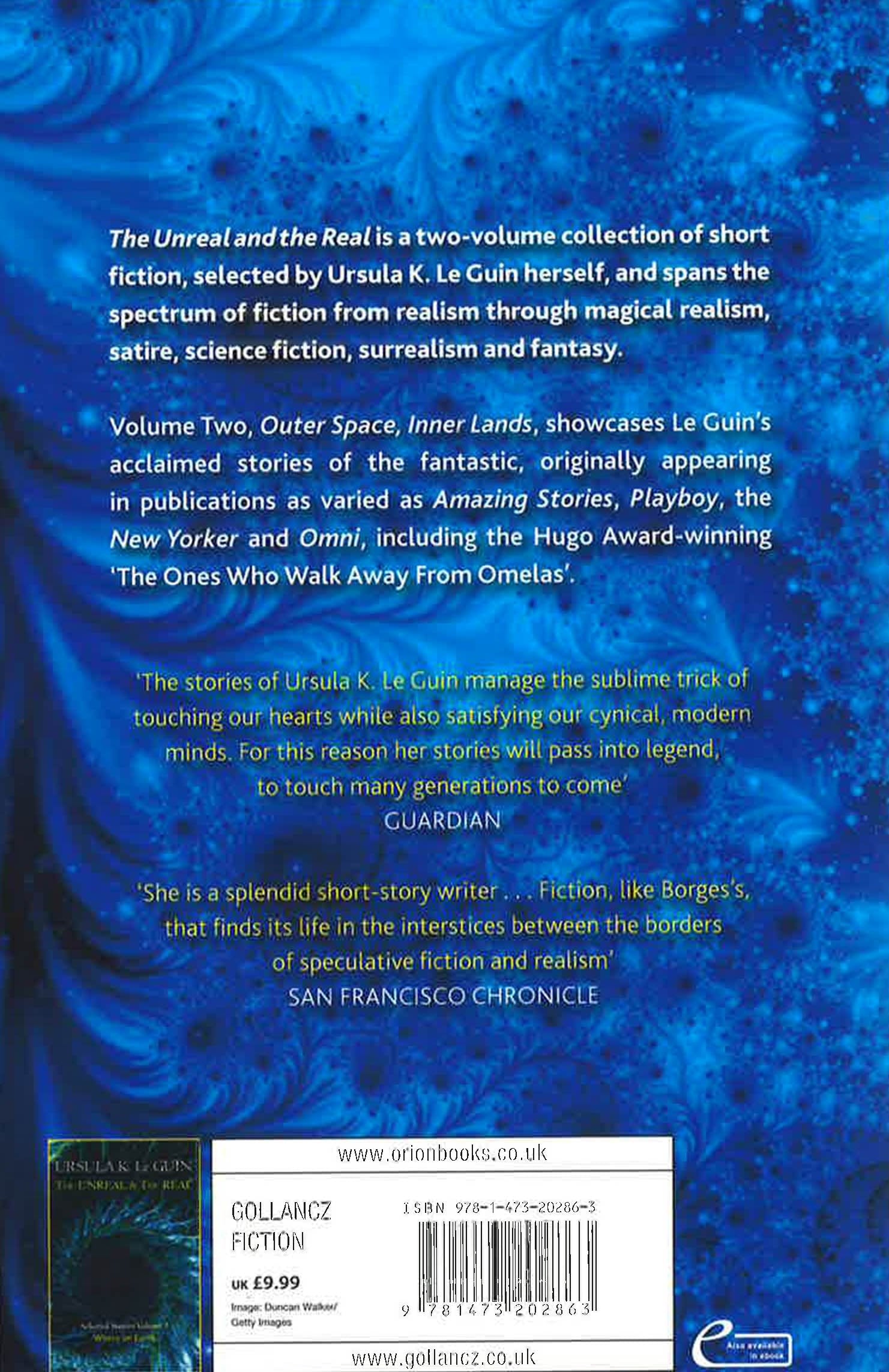 THE UNREAL AND THE REAL is a two-volume collection of stories, selected by Ursula Le Guin herself, and spans the spectrum of fiction from realism through magical realism, satire, science fiction, surrealism and fantasy. Volume Two, OUTER SPACE, INNER LANDS, showcases Le Guin's acclaimed stories of the fantastic, originally appearing in publications as varied as AMAZING STORIES, PLAYBOY, the NEW YORKER and OMNI, and contains 20 stories, including modern classics such as the HUGO AWARD-winning 'The Ones Who Walk Away From Omelas', NEBULA-nominee 'Nine Lives'; JAMES TIPTREE, JR MEMORIAL AWARD-winner (and HUGO and NEBULA-nominee) 'The Matter of Seggri'; NEBULA AWARD-winner 'Solitude'; and the secret history 'Sur', which was nominated for the HUGO AWARD and included in THE BEST AMERICAN SHORT STORIES