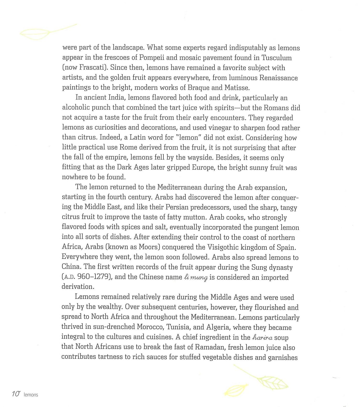 Recipes, crafts, gardening tips, and fascinating lore abound in this handsome celebration of the enchanting lemon. From a bright Lemon Gremolata to savory Lemon-Parsley Biscuits, simple recipes make the delightful tang of lemons the main attraction. There are also clever and useful lemon crafts to try, including a luscious Lemon Lip Balm, easy Lemon Pomanders to freshen the linen closet, and Lemon Cough Syrup to soothe the throat. The fascinating history of this beloved fruit takes readers on a journey across land and time, from its origins in the Mediterranean to its reign in Morocco and Tunisia, across continents to Europe and eventually America. With gorgeous photographs, practical wisdom, wonderful gift ideas, and homey delights, this charming book is the complete compendium for true lemon lovers.