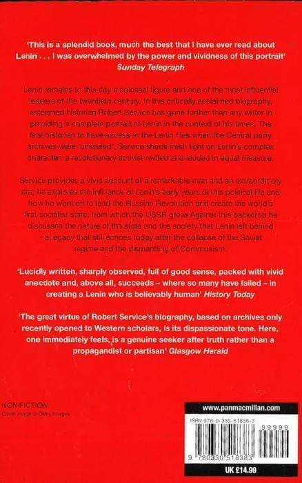 Lenin is a colossal figure whose influence on twentieth-century history cannot be underestimated. Robert Service has written a calmly authoritative biography on this seemingly unknowable figure. Making use of recently opened archives, he has been able to piece together the private as well as the public life, giving the first complete picture of Lenin. This biography simultaneously provides an account of one of the greatest turning points in modern history. Through the prism of Lenin's career, Service examines events such as the October Revolution and the ideas of Marxism-Leninism, the one-party state, economic modernisation, dictatorship, and the politics of inter-war Europe. In discovering the origins of the USSR, he casts light on the nature of the state and society which Lenin left behind and which have not entirely disappeared after the collapse of the Soviet regime in 1991. 'Immensely scholarly but also vivid and readable. This is a splendid book, much the best that I have ever read about Lenin ...I was overwhelmed by the power and vividness of this portrait.' Dominic Lieven, Sunday Telegraph 'He has managed skilfully to depict the surreal life of an obsessive, brilliant and stubborn individual' Guardian 'Lenin's life was politics, but Service has succeeded in keeping Lenin the man in focus throughout . . . This book deserves a place among the best studies of one of the most fascinating figures in modern history' Harold Shukman, The Times
