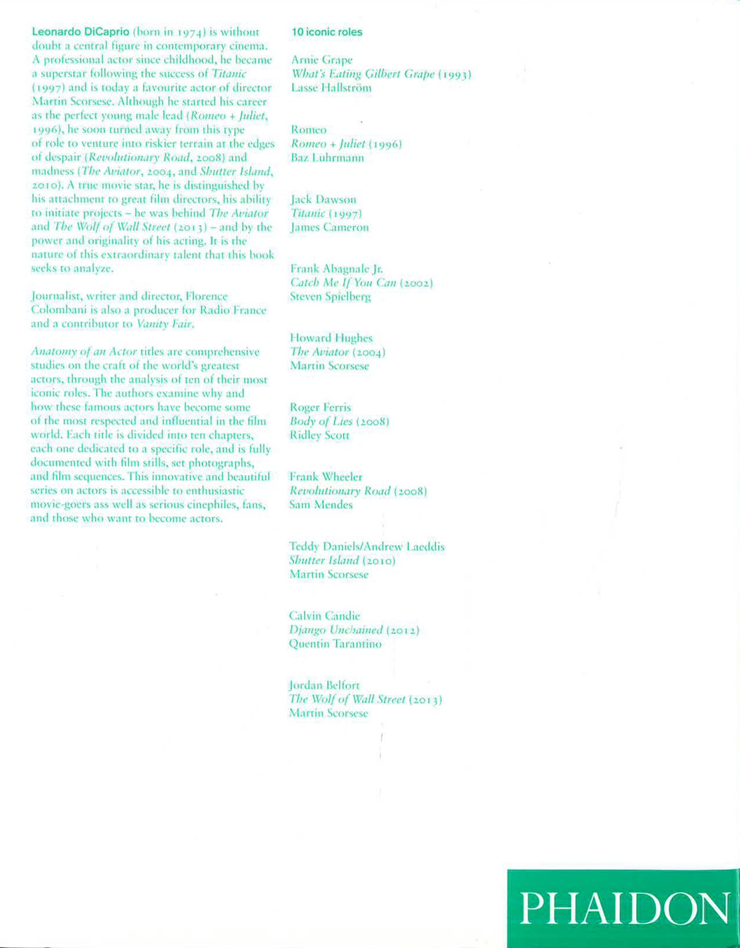 The Anatomy of an Actor series takes ten roles by a single actor, each studied in a dedicated chapter, and identifies the key elements that made the performances exceptional – carefully examining the actor's craft for both a professional audience and movie fans alike. Arguably the biggest star of his generation, Leonardo DiCaprio (b. 1974) is also one of its finest actors. Since first gaining attention in What's Eating Gilbert Grape at only 19 years old, he has consistently been in the public eye: notably in record-breaking Titanic in 1997, and most recently as the lead in Wolf of Wall Street, nominated for five Oscars.