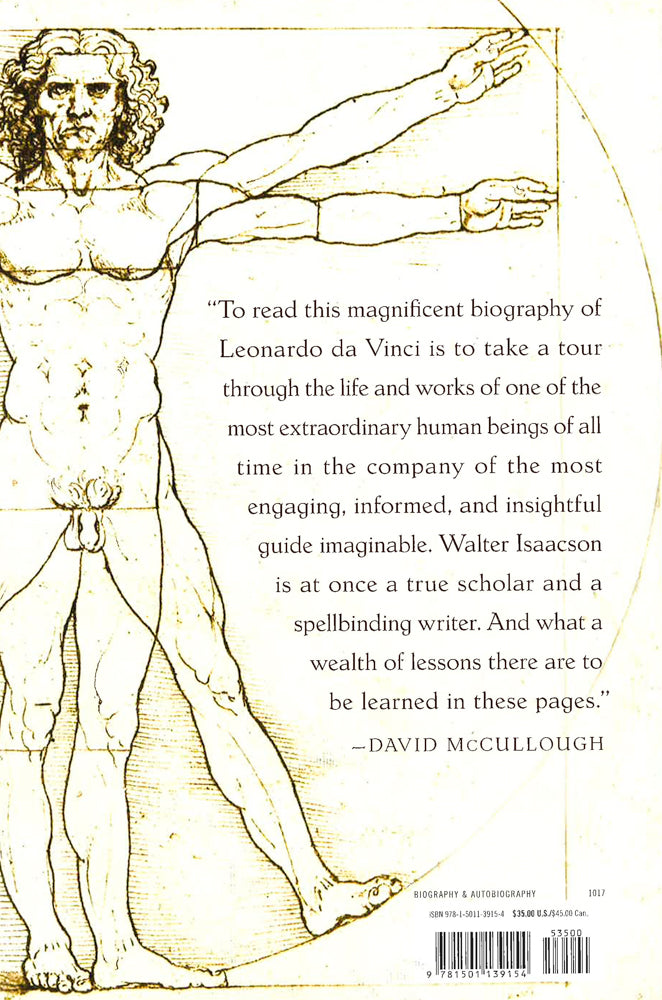 Based on thousands of pages from Leonardo's astonishing notebooks and new discoveries about his life and work, Walter Isaacson weaves a narrative that connects his art to his science. He shows how Leonardo's genius was based on skills we can improve in ourselves, such as passionate curiosity, careful observation, and an imagination so playful that it flirted with fantasy.