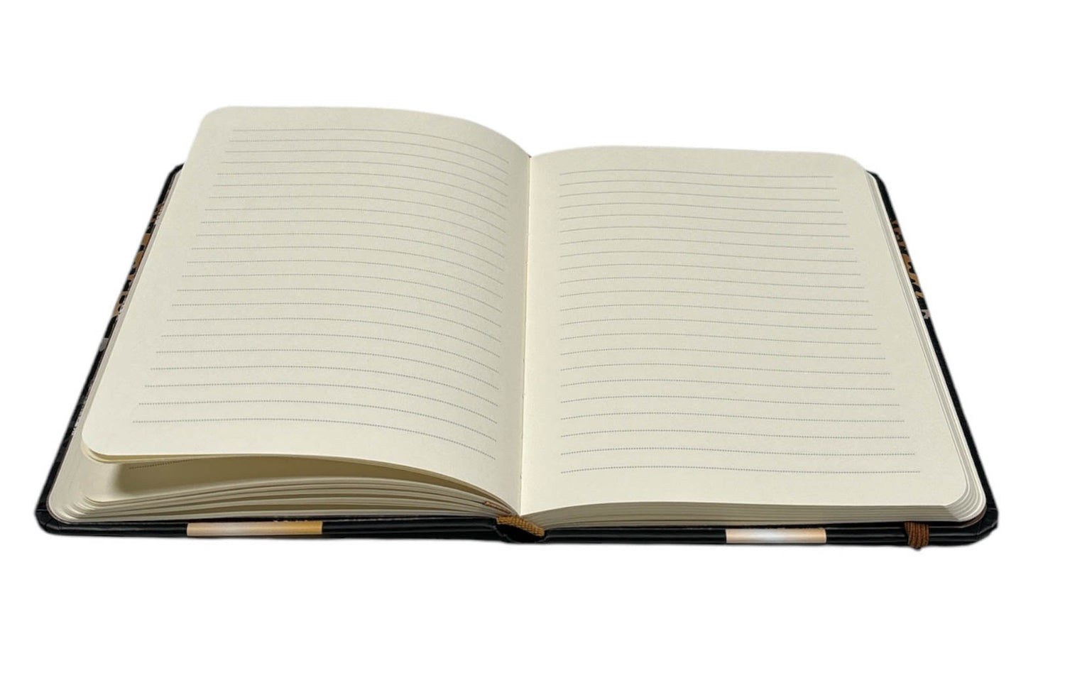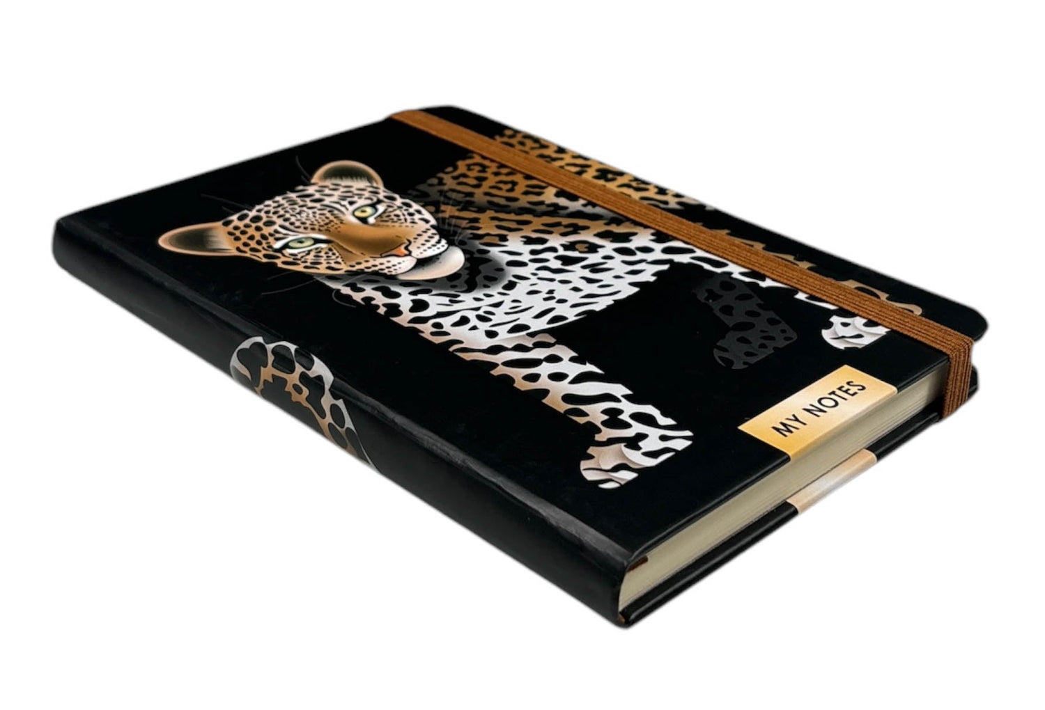 The 'Leopard Lined Journal' by Hush Designs Ltd is a notebook with a leopard patterned cover for jotting down notes and thoughts. It is created for those who appreciate an aesthetic and practical design for daily writing. "Lined Journal with Leopard" by Hush Designs Ltd is a notebook featuring a cover adorned with a leopard pattern, designed for recording notes and thoughts. It is crafted for those who appreciate an aesthetic and functional design for daily writing.