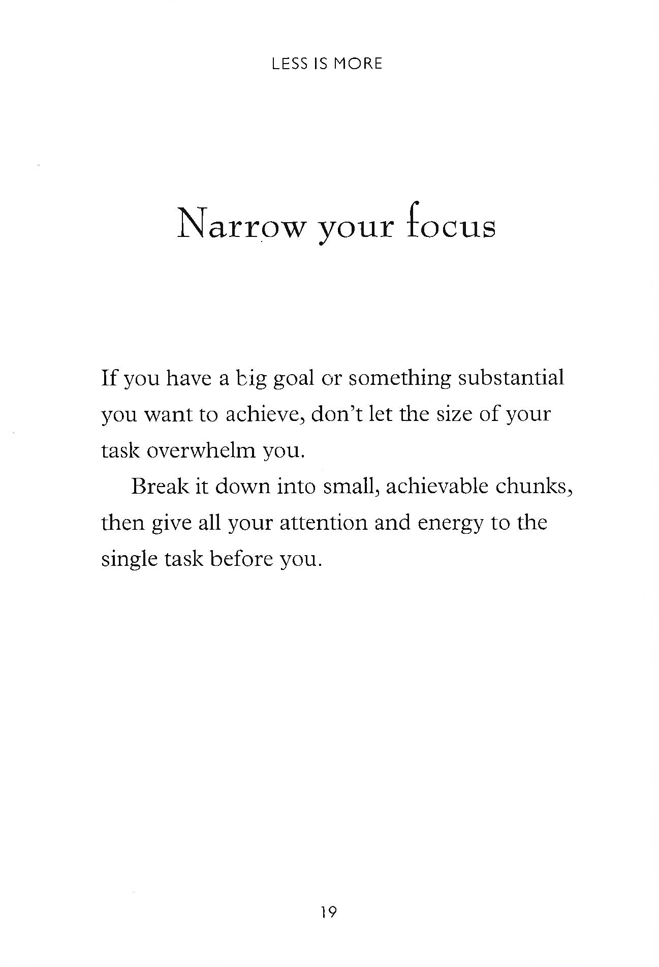 Less Is More is a collection of inspirational messages and advice that encourages the reader to enjoy life more by living a little more simply. Trying to do it all, be it all and have it all is exhausting - and all too often, people find themselves asking `what was it all for?' The sad conclusion for so many is that the things they pushed themselves to do and have were never that important. Less Is More shows the reader how to find more time and energy to enjoy the things that really do matter. It invites the reader to make small, simple changes in the way they live, like learning to say 'no' and embracing silence: changes that will simplify their life and leave them feeling relaxed and happy, instead of stressed and overwhelmed.