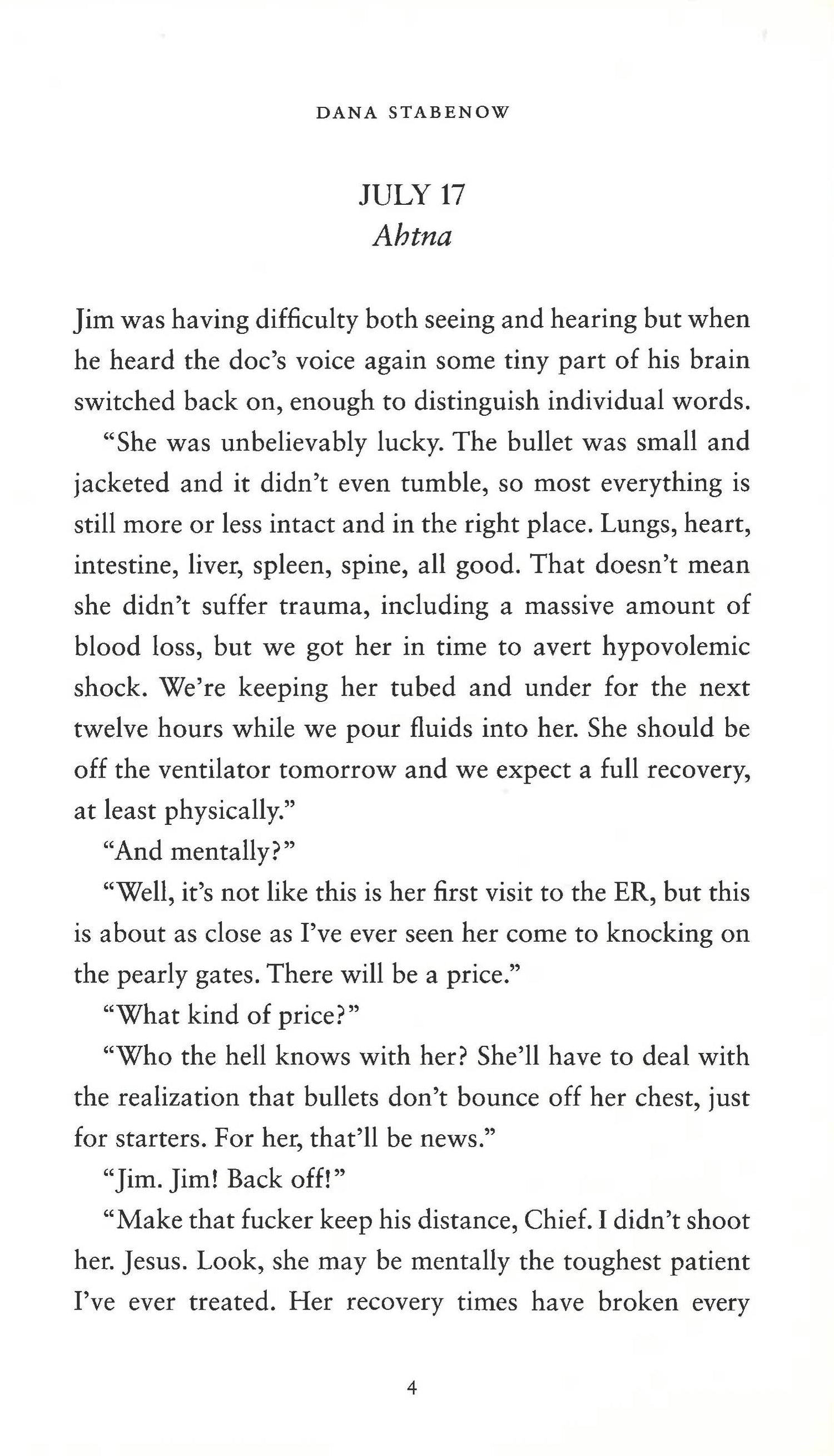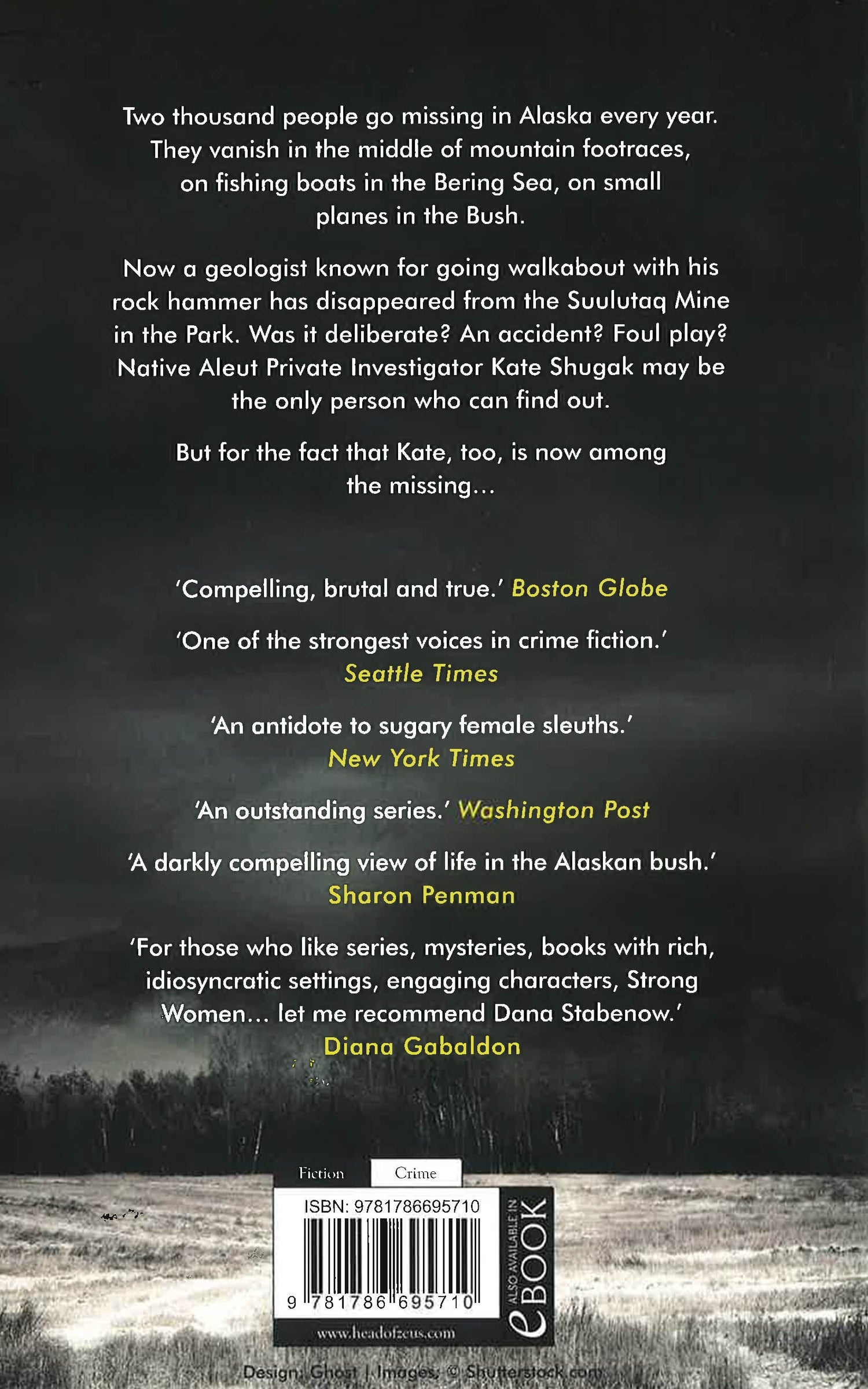 Two thousand people go missing in Alaska every year. They vanish in the middle of mountain footraces, on fishing boats in the Bering Sea, on small planes in the Bush. Now a geologist known for going walkabout with his rock hammer has disappeared from the Suulutaq Mine in the Park. Was it deliberate? An accident? Foul play? Native Aleut Private Investigator Kate Shugak may be the only person who can find out. But for the fact that Kate, too, is now among the missing...