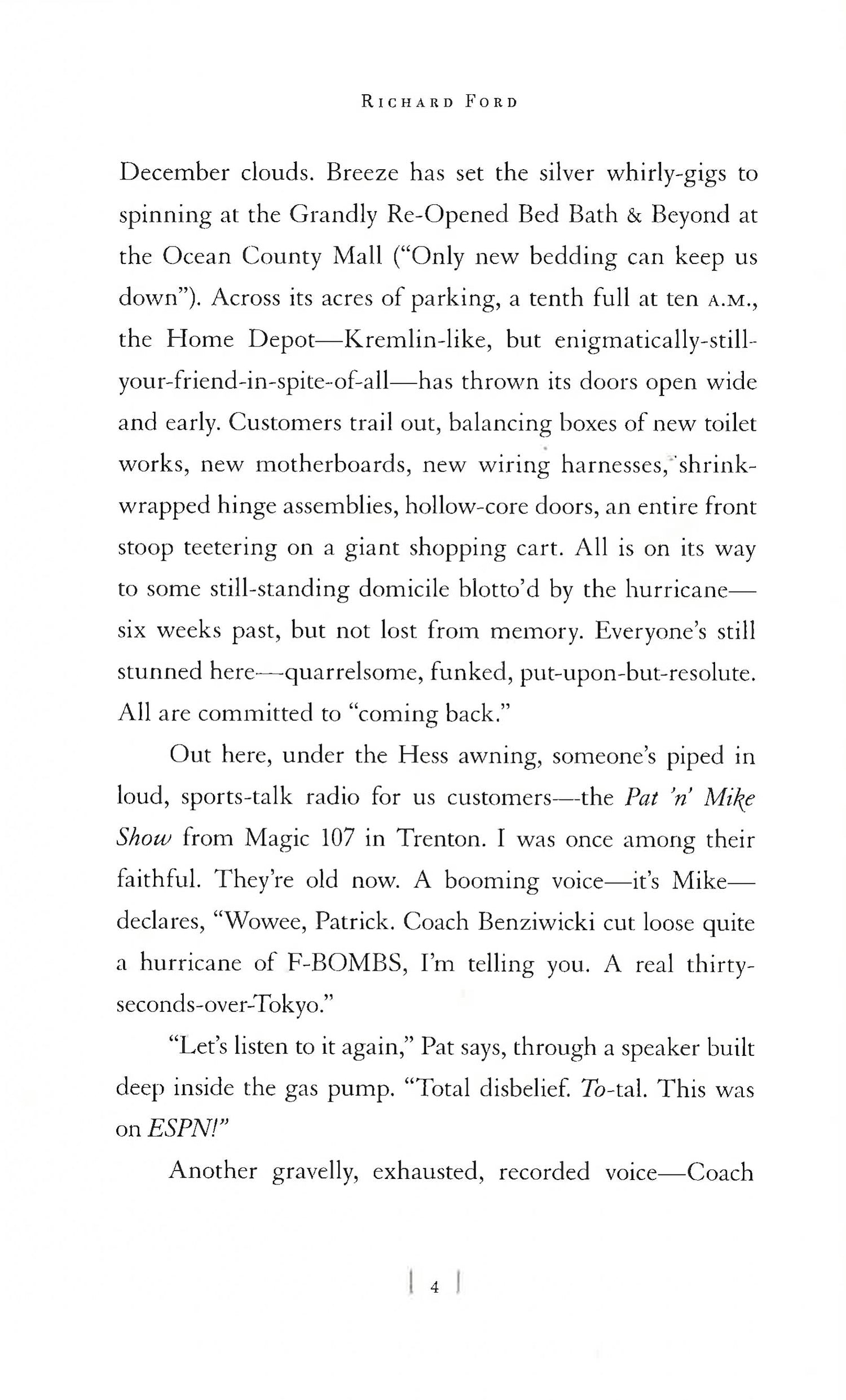In his trio of bestselling novels - The Sportswriter, Pulitzer Prize and PEN/Faulkner-winning Independence Day, and The Lay of the Land - Richard Ford set out the zeitgeist of an entire generation, through the divining and wit of his now-famous literary chronicler, Frank Bascombe, one of the most indelible, provocative and anticipated characters in modern American literature. In Let Me Be Frank With You, Ford returns with four deftly linked Christmas stories narrated by the iconic Bascombe. Now sixty-eight, Frank resides again in the New Jersey suburb of Haddam, and has thrived - seemingly but not utterly - amidst the devastations of Hurricane Sandy. The desolations of Sandy, which left houses, shorelines and countless lives unmoored and flattened, are the perfect backdrop and touchstone for Ford - and Bascombe. With a flawless comedic sensibility and unblinking intelligence, these stories range over the full complement of universal subjects: ageing, race, loss, faith, marriage, the real estate debacle - the tumult of the world we live in. Through Bascombe - funny, profane, touching, wise, often inappropriate - we share the aspirations and sorrows, longings, achievements and failings of American life in the morning of the new century. With his trademark candour and brimming wit, Richard Ford brings Bascombe back in all his imperfect glory to say (often hilariously) what all of us are thinking but few will voice aloud.