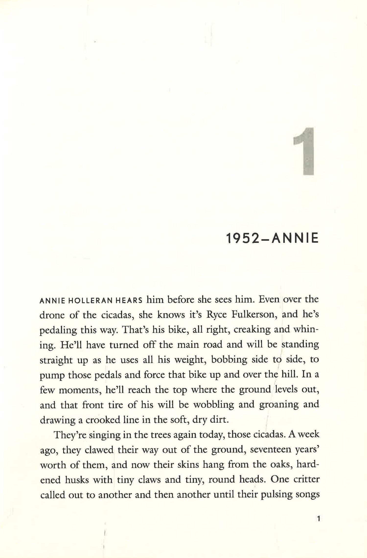 On a dark Kentucky night in 1952 exactly halfway between her fifteenth and sixteenth birthdays, Annie Holleran crosses into forbidden territory. Everyone knows Hollerans don’t go near Baines, not since Joseph Carl was buried two decades before, but, armed with a silver-handled flashlight, Annie runs through her family’s lavender fields toward the well on the Baines’ place. At the stroke of midnight, she gazes into the water in search of her future. Not finding what she had hoped for, she turns from the well and when the body she sees there in the moonlight is discovered come morning, Annie will have much to explain and a past to account for.