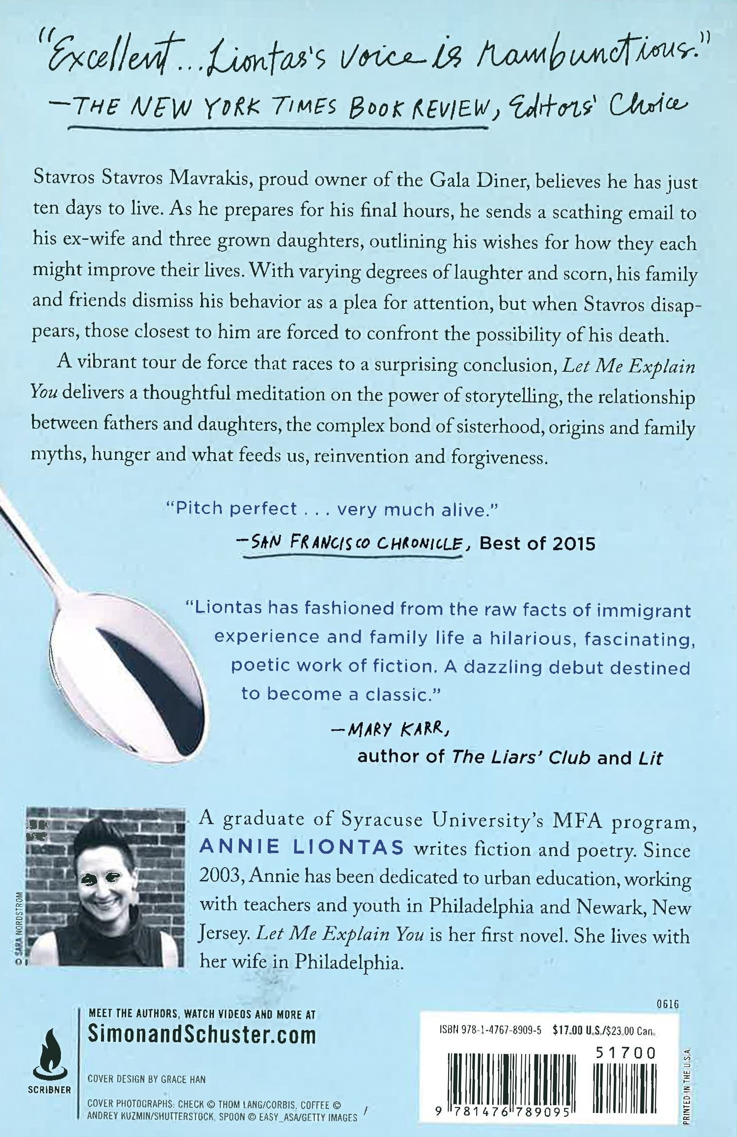 An unforgettable novel about a Greek American family and its enigmatic patriarch from a significant new voice in contemporary literature: "Hilarious yet rich...This debut by Annie Liontas will touch you" (The New York Times). Stavros Stavros Mavrakis, Greek immigrant and proud owner of the Gala Diner, believes he has just ten days to live. As he prepares for his final hours, he sends a scathing email to his ex-wife and three grown daughters, outlining his wishes for how they each might better live their lives. With varying degrees of laughter and scorn, his family and friends dismiss his behavior as nothing more than a plea for attention, but when Stavros disappears, those closest to him are forced to confront the possibility of his death. A vibrant tour de force that races to a surprising conclusion, Let Me Explain You is told from multiple perspectives: Stavros Stavros, brimming with pride and cursing in broken English; his eldest daughter Stavroula, a talented chef in love with her boss's daughter; her sister, the wounded but resilient Litza; and many other voices who compose a veritable Greek chorus. Funny yet deeply moving, this "pitch perfect" (San Francisco Chronicle) novel delivers a thoughtful meditation on the power of storytelling. In Let Me Explain You, Annie Liontas explores our origins and family myths, the relationship between fathers and daughters, the complex bond of sisterhood, hunger and what feeds us, but "the novel's true heart is one filled with love and forgiveness" (Minneapolis Star-Tribune).