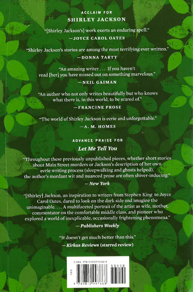 NAMED ONE OF THE BEST BOOKS OF THE YEAR BY NPR From the renowned author of The Lottery and "The Haunting of Hill House, " a spectacular new volume of previously unpublished and uncollected stories, essays, and other writings. Shirley Jackson is one of the most important American writers of the last hundred years. Since her death in 1965, her place in the landscape of twentieth-century fiction has grown only more exalted. As we approach the centenary of her birth comes this astonishing compilation of fifty-six pieces more than forty of which have never been published before. Two of Jackson s children co-edited this volume, culling through the vast archives of their mother s papers at the Library of Congress, selecting only the very best for inclusion. Let Me Tell You" brings together the deliciously eerie short stories Jackson is best known for, along with frank, inspiring lectures on writing; comic essays about her large, boisterous family; and whimsical drawings. Jackson s landscape here is most frequently domestic: dinner parties and bridge, household budgets and homeward-bound commutes, children s games and neighborly gossip. But this familiar setting is also her most subversive: She wields humor, terror, and the uncanny to explore the real challenges of marriage, parenting, and community the pressure of social norms, the veins of distrust in love, the constant lack of time and space. For the first time, this collection showcasesShirley Jackson s radically different modes of writing side by side. Together they show her to be a magnificent storyteller, a sharp, sly humorist, and a powerful feminist. This volume includes a Foreword by the celebrated literary critic and Jackson biographer Ruth Franklin. Praise for "Let Me Tell You Stunning. "O: The Oprah Magazine Let us now at last celebrate dangerous women writers: how cheering to see justice done with [this collection of] Shirley Jackson s heretofore unpublished works uniquely unsettling stories and ruthlessly barbed essays on domestic life. "Vanity Fair Feels like an uncanny dollhouse: Everything perfectly rendered, but something deliciously not quite right. NPR There are . . . times in reading [Jackson s] accounts of desperate women in their thirties slowly going crazy that she seems an American Jean Rhys, other times when she rivals even Flannery O Connor in her cool depictions of inhumanity and insidious cruelty, and still others when she matches Philip K. Dick at his most hallucinatory. At her best, though, she s just incomparable. "The Washington Post Offers insights into the vagaries of [Jackson s] mind, which was ruminant and generous, accommodating such diverse figures as Dr. Seuss and Samuel Richardson. "The New York Times Book Review The best pieces clutch your throat, gently at first, and then with growing strength. . . . The whole collection has a timelessness. "The Boston Globe [Jackson s] writing, both fiction and nonfiction, has such enduring power she brings out the darkness in life, the poltergeists shut into everyone s basement, and offers them up, bringing wit and even joy to the examination. "USA Today The closest we can get to sitting down and having a conversation with . . . one of the most original voices of her generation. "The Huffington Post"