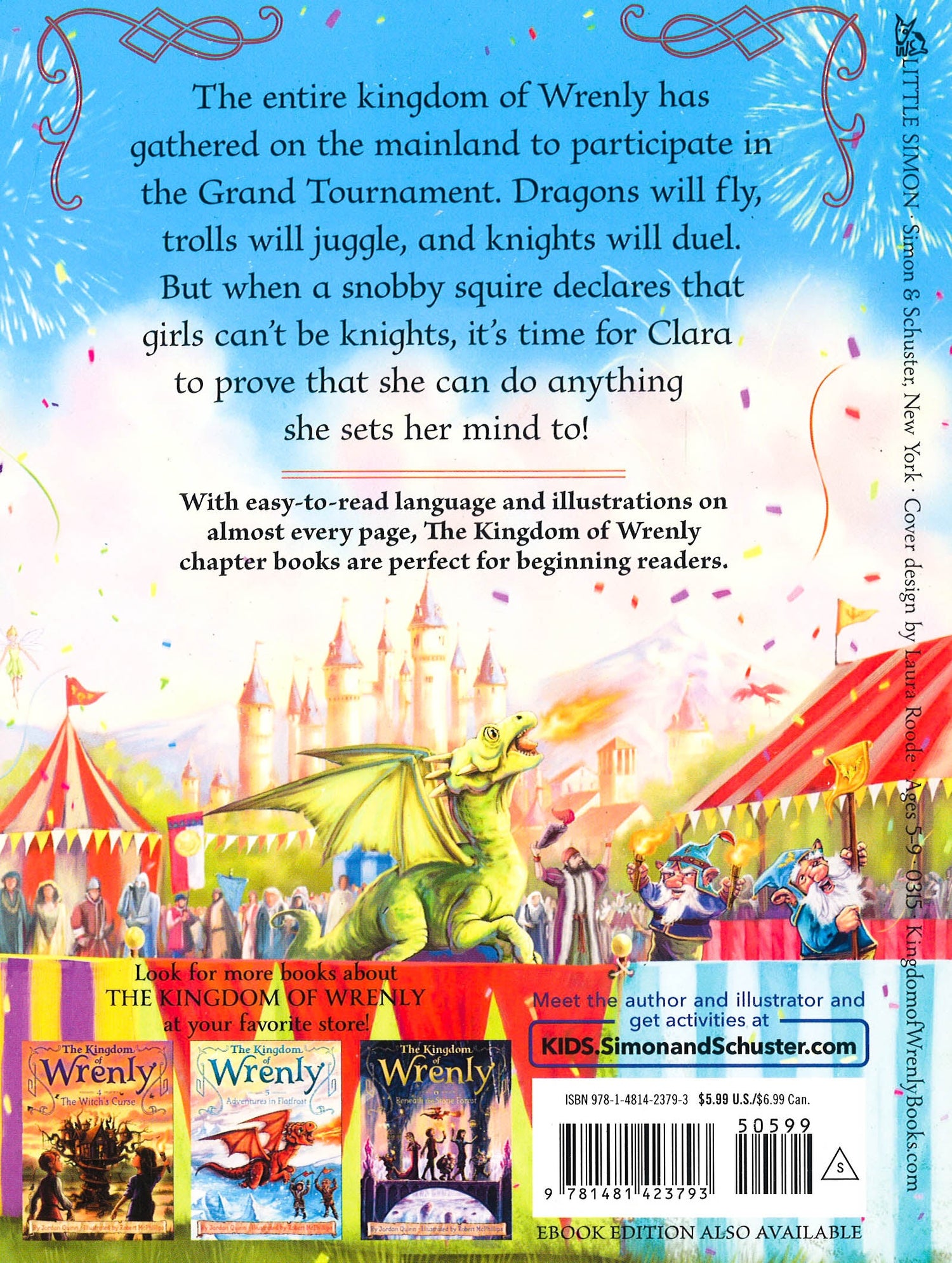In this seventh chapter book in the fantastical Kingdom of Wrenly series, Clara sets out to prove that girls can be knights too. The diverse subjects of Wrenly have traveled far and wide to participate in the kingdom's Grand Tournament. Dragons will fly, trolls will juggle, and knights will duel. But when a snobby squire declares that girls can't be knights, it's time for Clara to prove that she can do anything she sets her mind to! With easy-to-read language and illustrations on almost every page, The Kingdom of Wrenly chapter books are perfect for beginning readers.