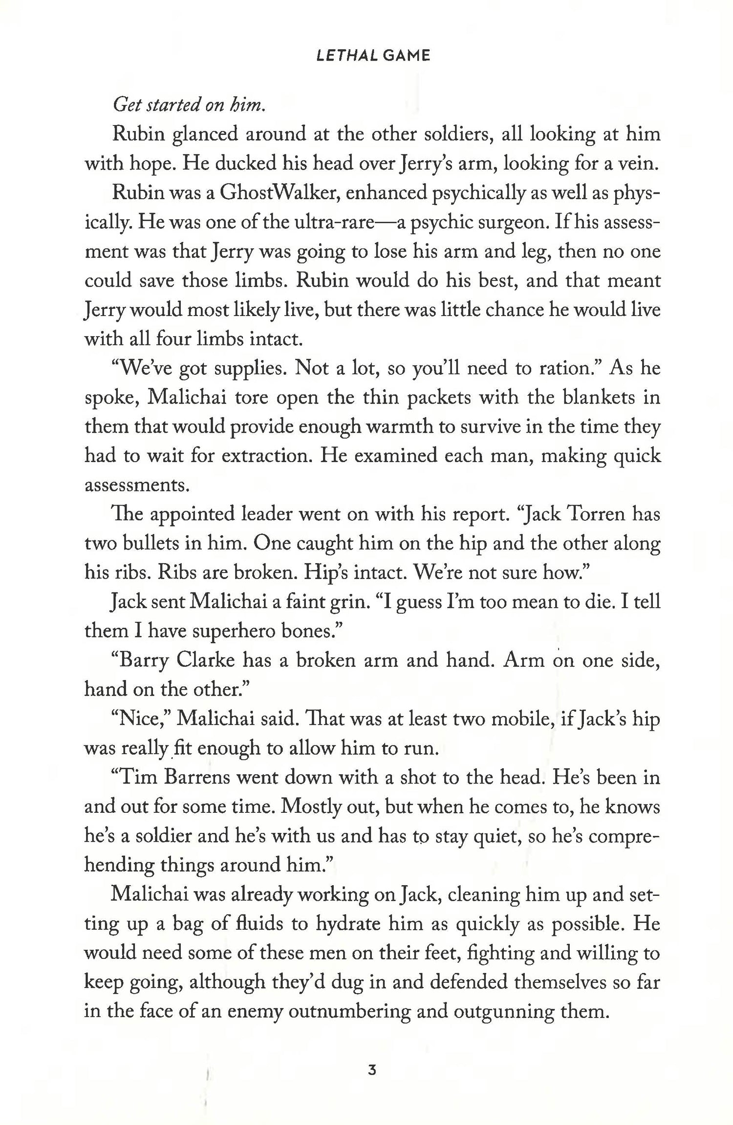 Despite plenty of drama and vibrant secondary characters, Feehan’s 16th GhostWalker novel (after Toxic Game) disappoints with inelegant prose and a wooden central couple. Malichai is a GhostWalker, a soldier physically and psychically enhanced by mad scientist Dr. Whitney, working with a covert military pararescue squad. When a rescue mission goes wrong and almost costs Malichai one of his legs, the women of his chosen family of fellow GhostWalkers force him to rehabilitate on a beach vacation in San Diego. There he finds himself drawn to Amaryllis, an employee at the B&B where he’s staying who has psychic healing powers that lead Malichai to believe she may also be a victim of Dr. Whitney’s experiments. Malichai realizes that Amaryllis is in danger from the deranged doctor and calls in his GhostWalker brothers to help protect her. Glimmers of the sexy, dangerous fun Feehan’s fans will expect are subsumed in clunky exposition, awkward fight scenes, and overly convenient plotting. Series readers will be glad to revisit familiar faces from the vast GhostWalker universe but won’t find much else to hold their attention.