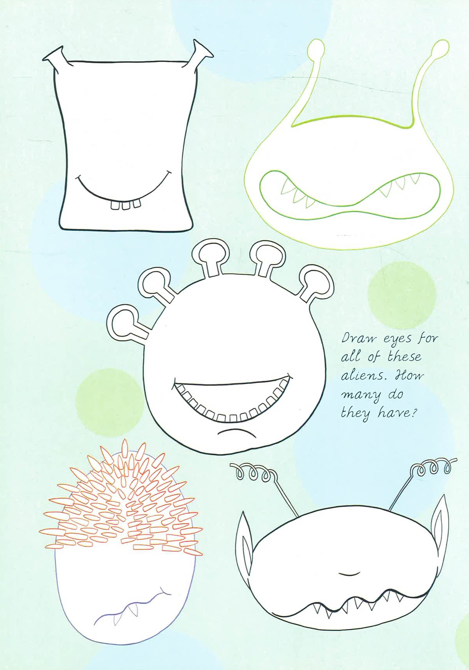 Pencils at the ready . . . let's explore your imagination and aliens from faraway planets. It's time to doodle an alien sofa, sketch an alien sky, draw yourself as an alien . . . and much more!