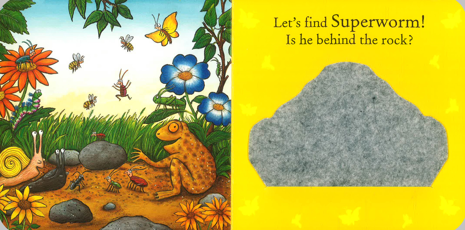 Julia Donaldson's favourite characters are now in gorgeous board books with lovely soft felt flaps for toddlers to lift and find fun things. Where has Superworm gone? Can you find him? Lift the colourful felt flaps in this fun chunky board book, perfect for small hands, until you find Superworm! While there is so much fun to be had, this board book will also help increase hand-eye co-ordination, develop speech and aid learning through repetition. Based on the bestselling book Superworm by Julia Donaldson and illustrated by Axel Scheffler, the creators of The Gruffalo. Celebrating 10 years of Superworm in 2022 Story based on the chorus of the bestselling book Superworm by Julia Donaldson and Axel Scheffler, creators of The Gruffalo, Stick Man and Zog The animated film of Tabby McTat stars voice artists including Jodie Whittaker (Doctor Who) as the narrator, Rob Brydon (Gavin and Stacey) as Fred, Sope Dirisu (Gangs of London) as Tabby McTat, alongside Cariad Lloyd, Joanna Scanlan and Susan Wokoma. Look out for Jonty Gentoo by Julia Donaldson and Axel Scheffler in 2024.