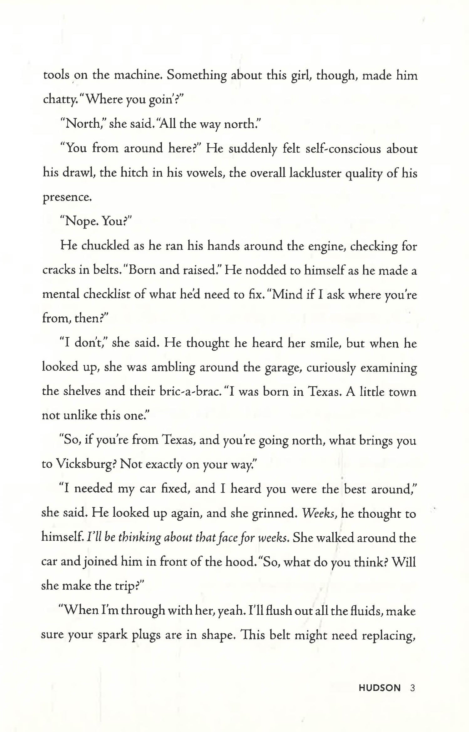 Hudson, Bree, Elliot, and Sonia have only one thing in common: a girl named Leila. On a mission to see the Northern lights, Leila drives from Louisiana to Alaska, crashing into each of their lives in her absurdly red car.