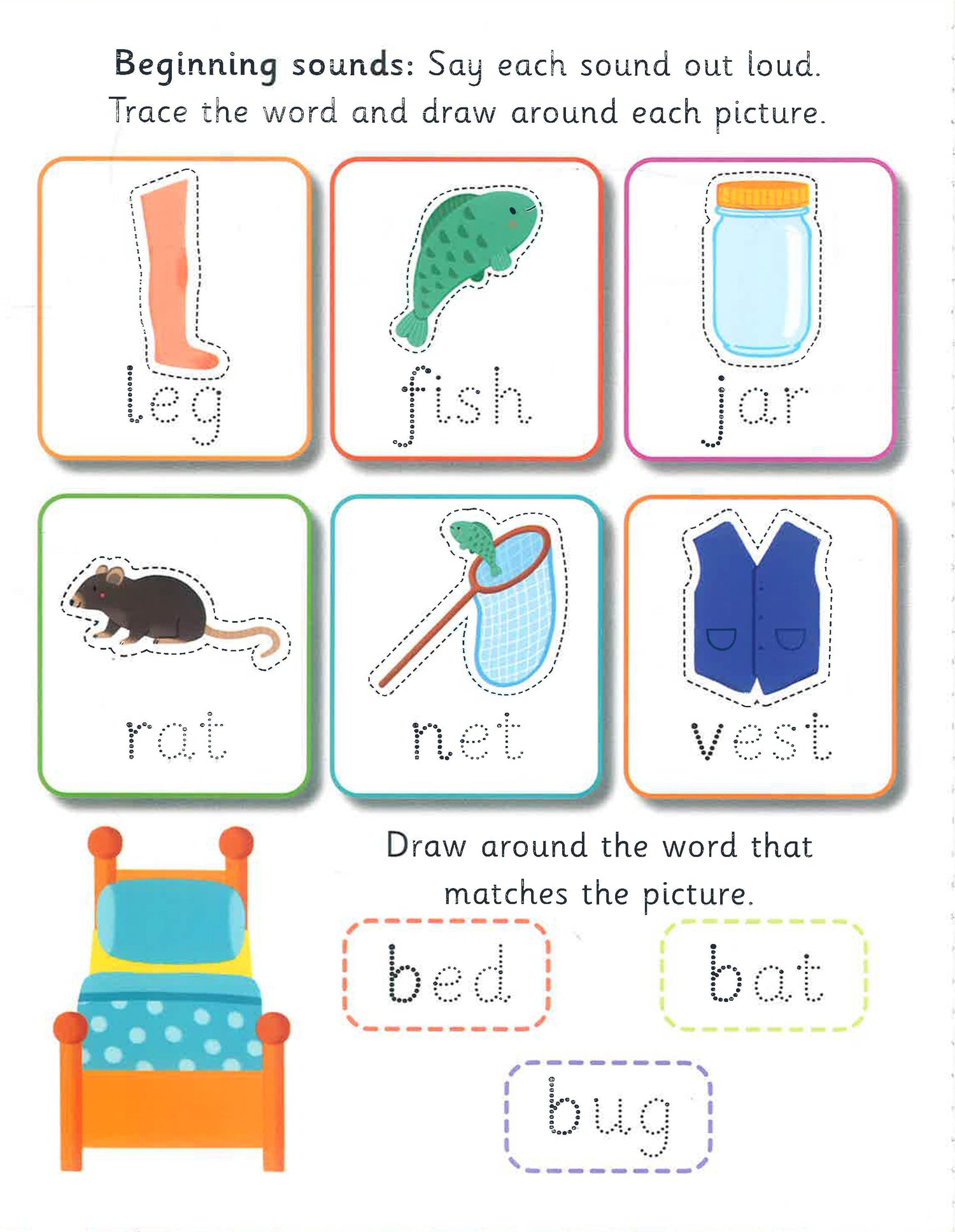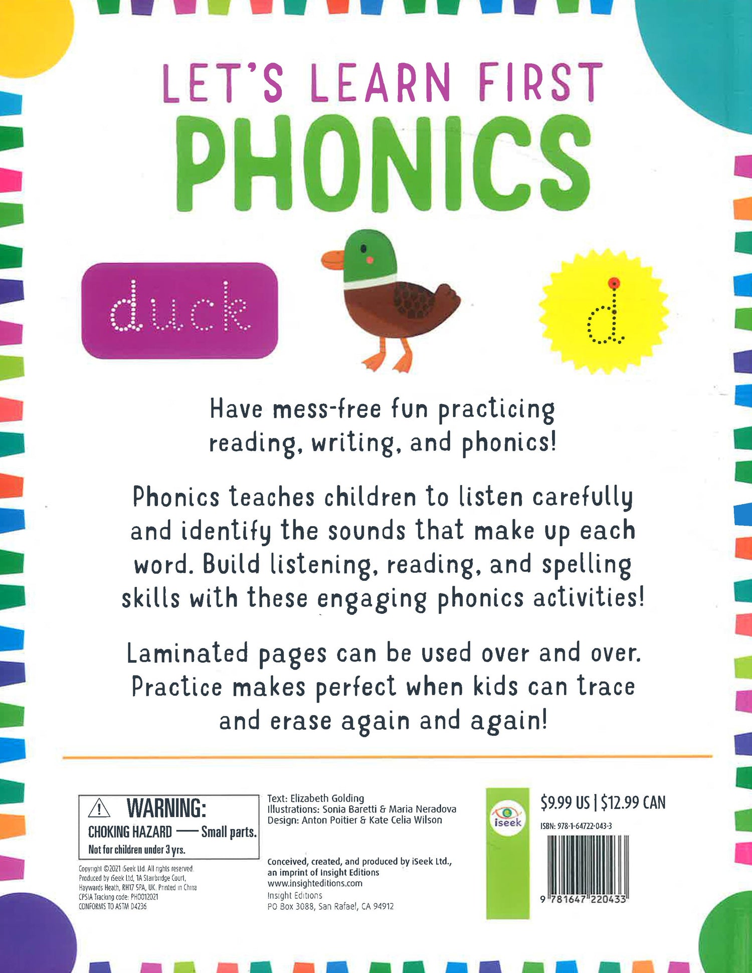 Learning to read and write has never been more fun! With Let’s Learn: First Phonics, kids will be introduced to words, challenged with fun puzzles and activities, and able to practice pen control and letter forms over and over again. Using the included pen on sturdy specially coated pages, young learners can trace over dotted lines as they sound out the letters and words for familiar things in their world. Simply wipe off with a tissue or soft cloth to practice again and again. The pen fits securely on the book’s cover for easy take-and-go learning anywhere, anytime.