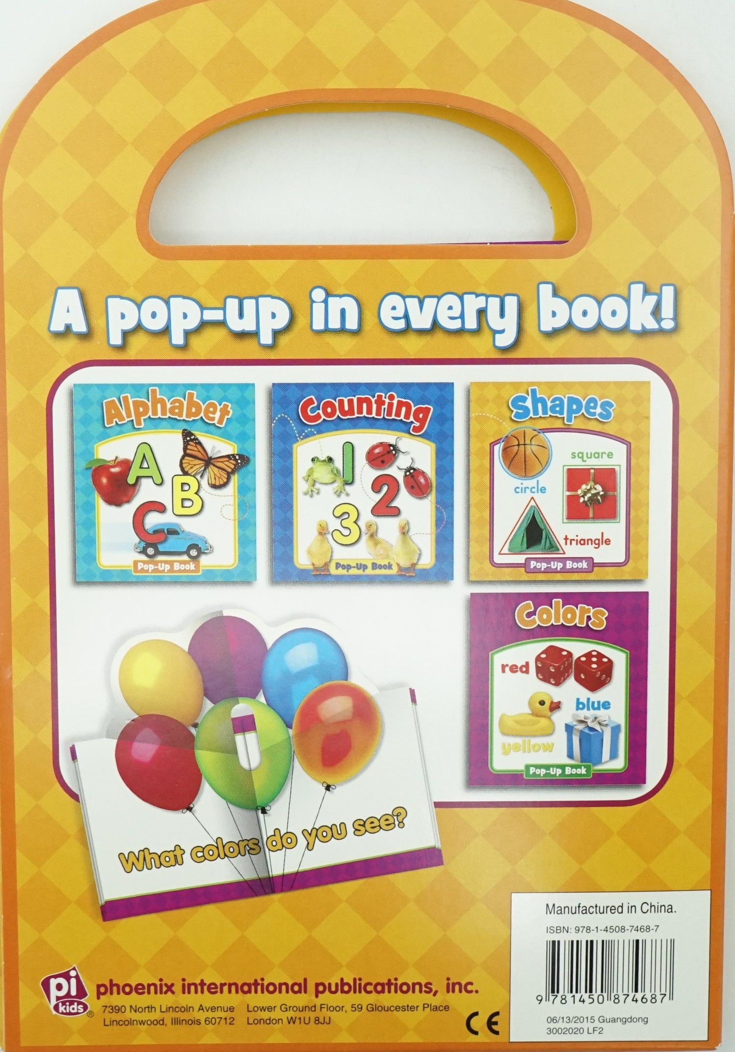 Small Saddle Stitch Book with Pop Up Page: Let's Learn 4-Books with Carry Case