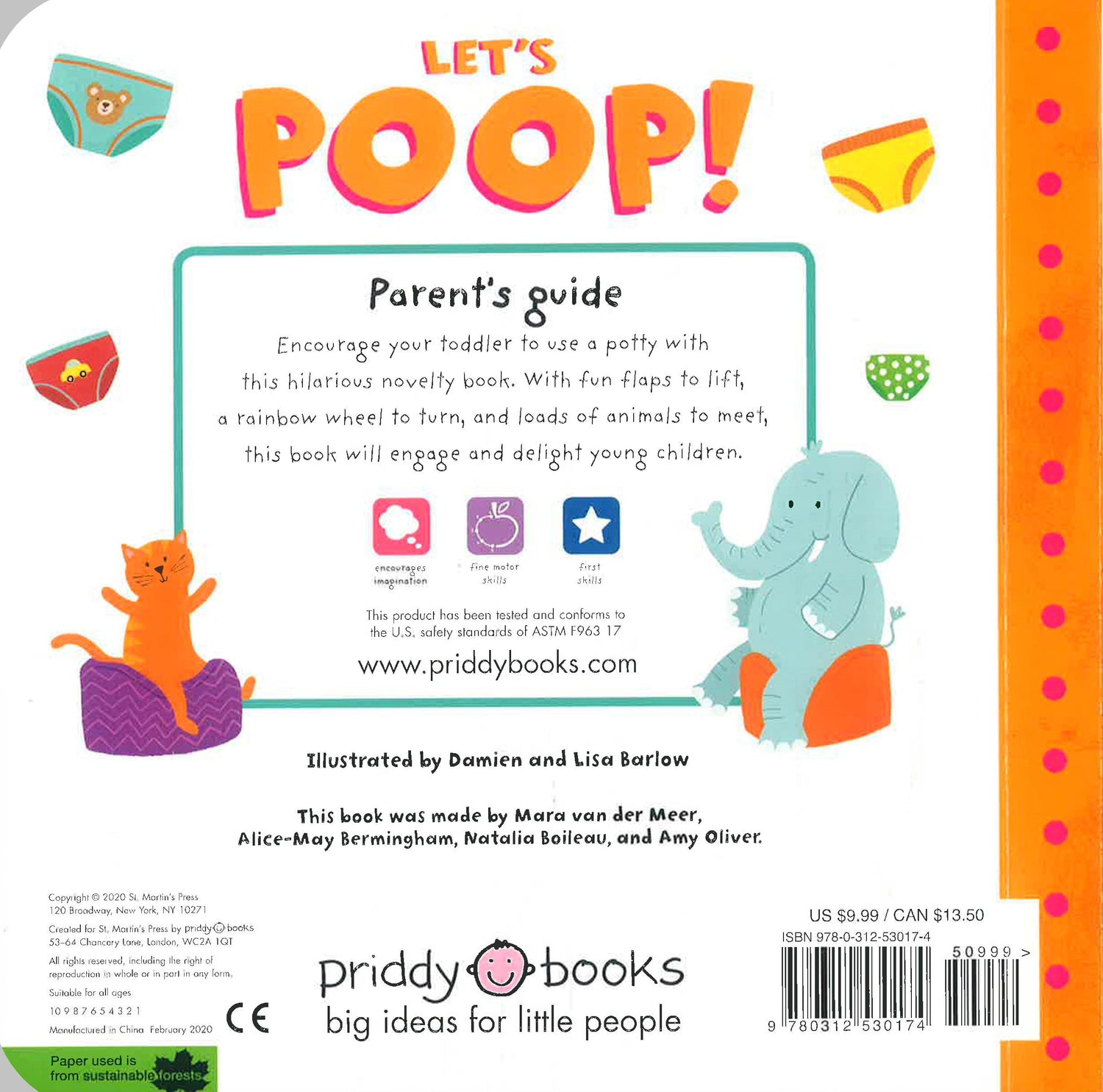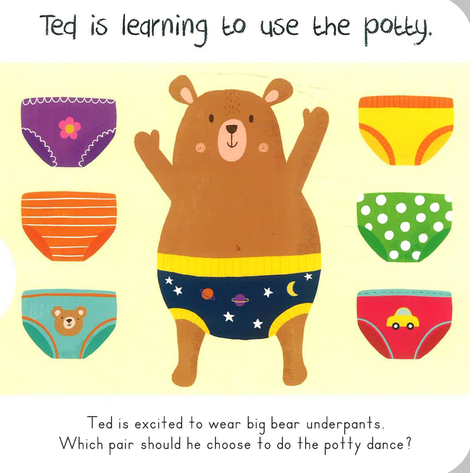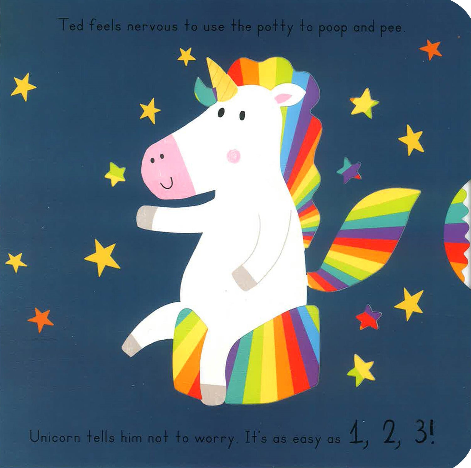 Learn to use a potty whilst learning fun and silly facts about poop. Turn the wheel to see the unicorn's rainbow potty, choose which potty a bear should use, and lift the flaps to find out which creature does the biggest poop of all.