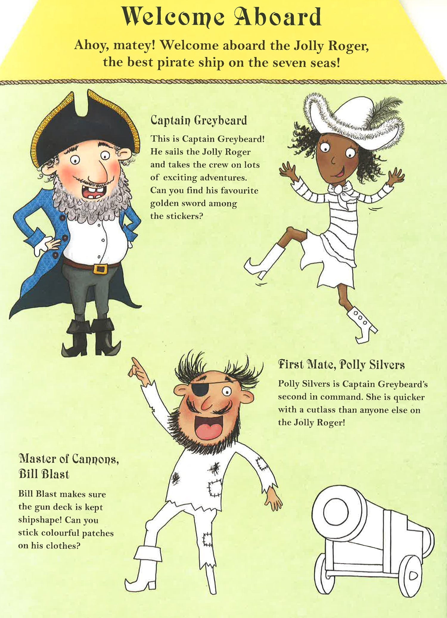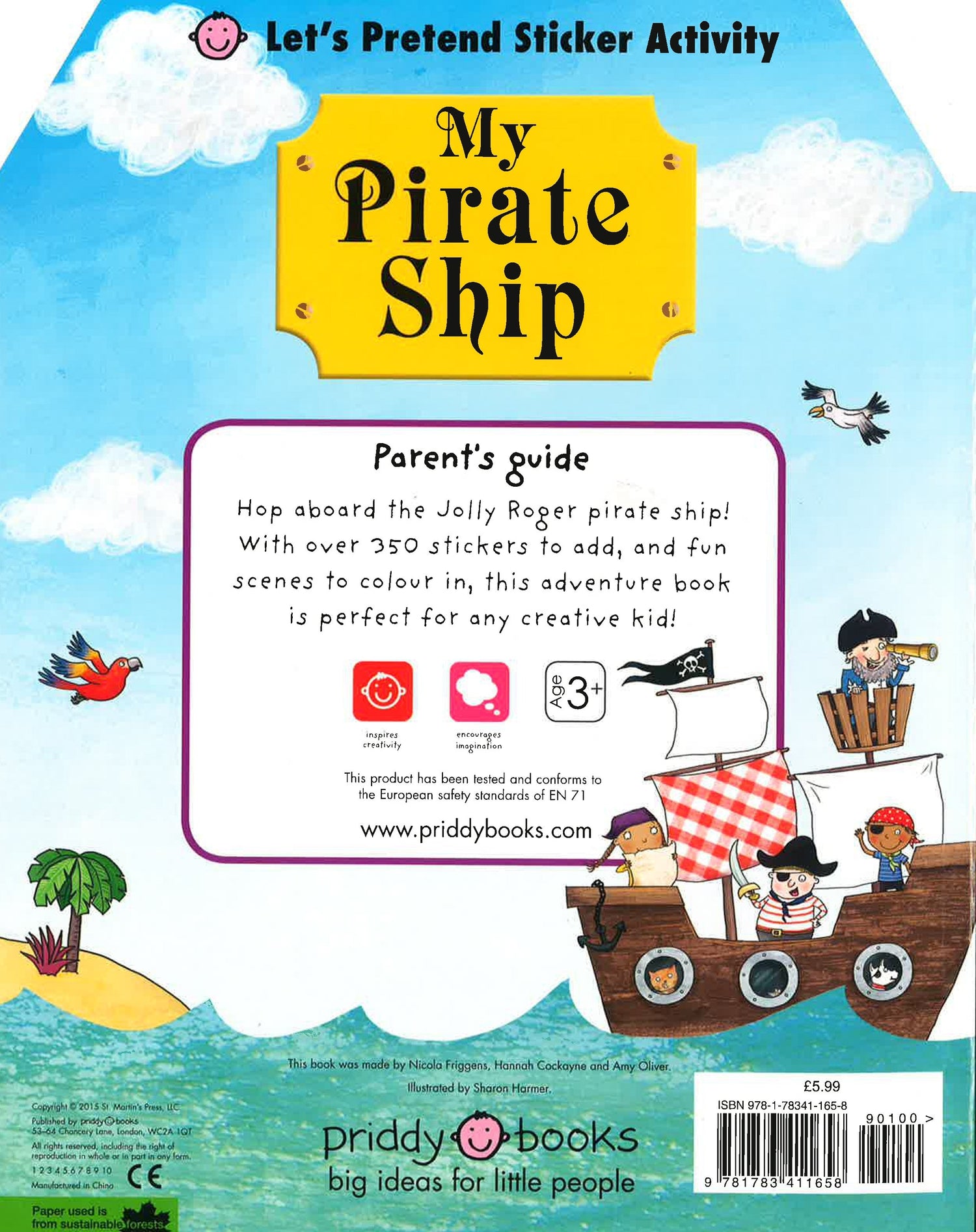 Ship ahoy! It's all on board for adventure on the high seas with Captain Greybeard and his pirate crew in this swashbuckling sticker activity book. With over 350 stickers to complete and decorate the pirate ship scenes - including the Captain's Cabin, Treasure Room and Crow's Nest - plus lots of colouring to do, this is sure to be a hit with every creative and imaginative budding young pirate.
