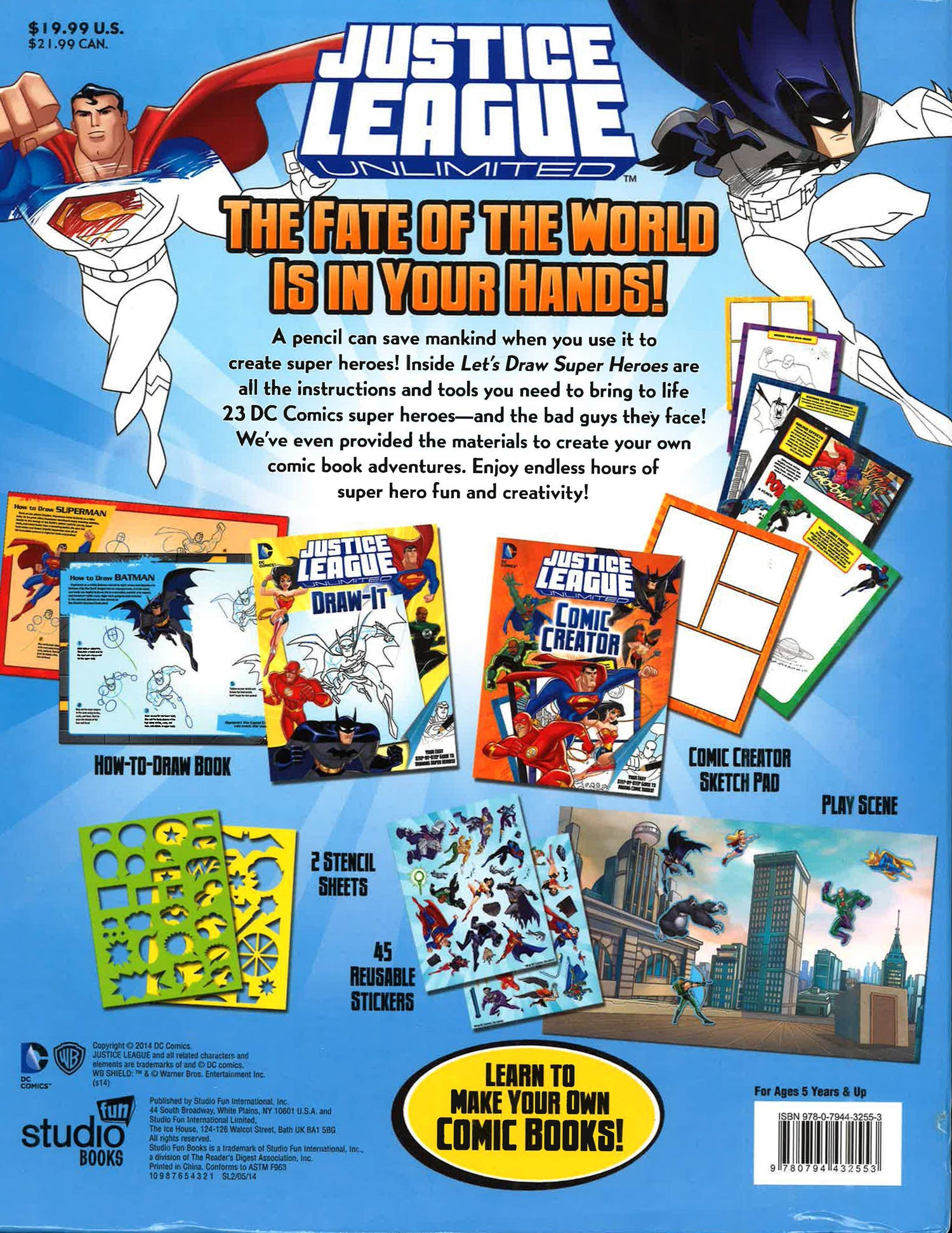 Learn to make your own Comic Books! A pencil can save mankind when you use it to create super heroes! Inside Let's Draw Super Heroes are all the instructions and tools you need to bring to life 23 DC Comics super heroes-and the bad guys they face! We've even provided the materials to create your own comic book adventures. Enjoy endless hours of super hero fun and creativity! Includes: How-to-draw book, Comic Creator Sketch Pad, 2 Stencil Sheets and 45 Reusable Stickers.