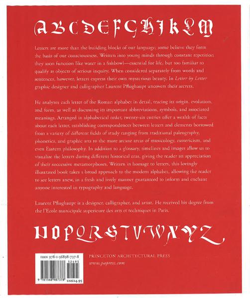 Letters are the building blocks of our language, and quite possibly of our consciousness. Written into young minds through constant repetition, letters soon function like water in a fishbowlessential for life, but too familiar to qualify as objects of serious inquiry. But considered separately from words and sentences, letters express their own mysteriousbeauty. In order to uncover their secrets, it is necessary to forego the conventional historical approach in favor of animpassioned appreciation of their formal and sensual characteristics.In Letter by Letter graphic designer and calligrapher Laurent Pflughaupt analyzes each letter of the Roman alphabet in detail, tracing its origin, evolution, and form, as well as discussing its important abbreviations, symbols, and associated meanings. Arranged in alphabetical order, twenty-six entries offer a wealth of facts about each letter, establishingcorrespondences between letters and elements borrowed from a variety of different fields of study, ranging from traditionalpaleography, phonetics, and graphic arts to the more arcane areas of musicology, esotericism, and even Eastern philosophy.In addition to a glossary, timelines and images allow us to visualize the letters during the different historical eras, givingthe reader an appreciation of their successive metamorphoses. Written as an homage, this lovingly illustrated book takes abroad approach to the modern alphabet, allowing the reader to see letters anew, in a fresh and lively manner guaranteed toinform and enchant anyone interested in typography and language.