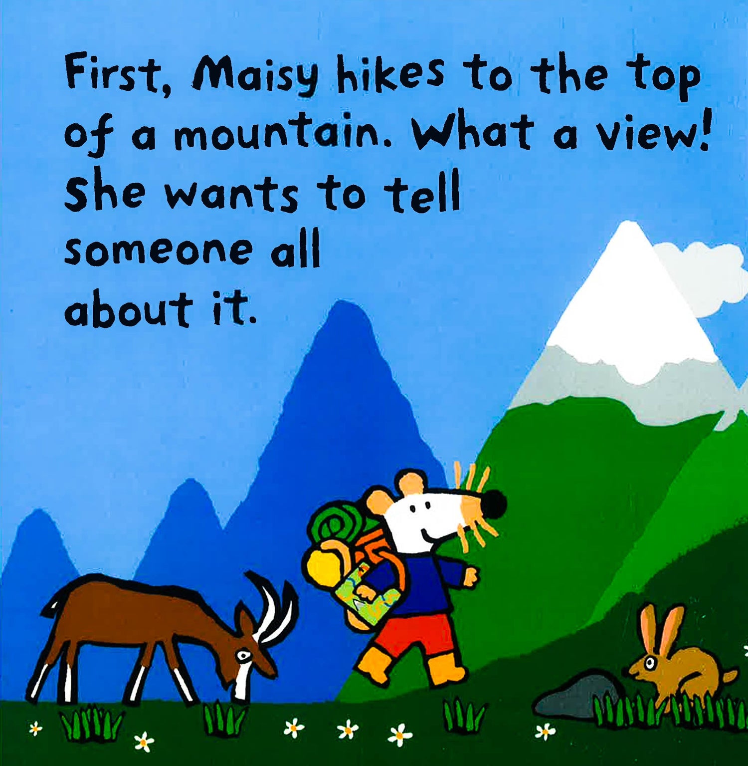 Maisy is on holiday! She writes letters and sends them back to all her friends, including you! Open the envelopes to find games, souvenirs and more. Maisy is on holiday! Join her on an exciting journey as she hikes up a mountain, visits a market, rows along the river, goes to a funfair and relaxes on the beach. For every adventure, Maisy sends home a letter to each one of her friends ... including one for you!