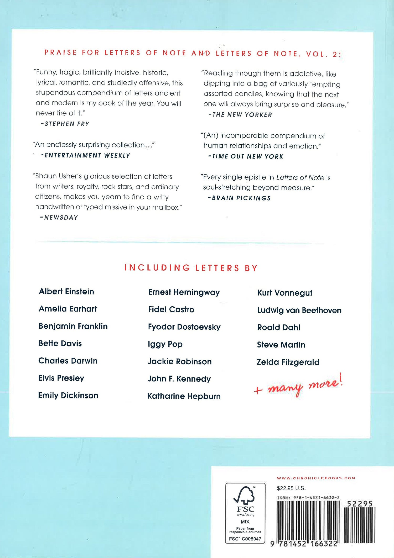 This New York Times bestseller offers a unique glimpse of the events and people of history--the brightest and best, the most notorious, and the endearingly everyday. All 125 entries include a transcript of the letter; a short introduction; and, in 100 cases, a captivating facsimile of the letter itself. The artfulness of Shaun Usher's eclectic arrangement creates a reading experience rich in discovery. Colorfully illustrated with photographs, portraits, and artwork, Letters of Note is a visual treat. In this paperback edition, new readers will find delight and surprise with every page turn.