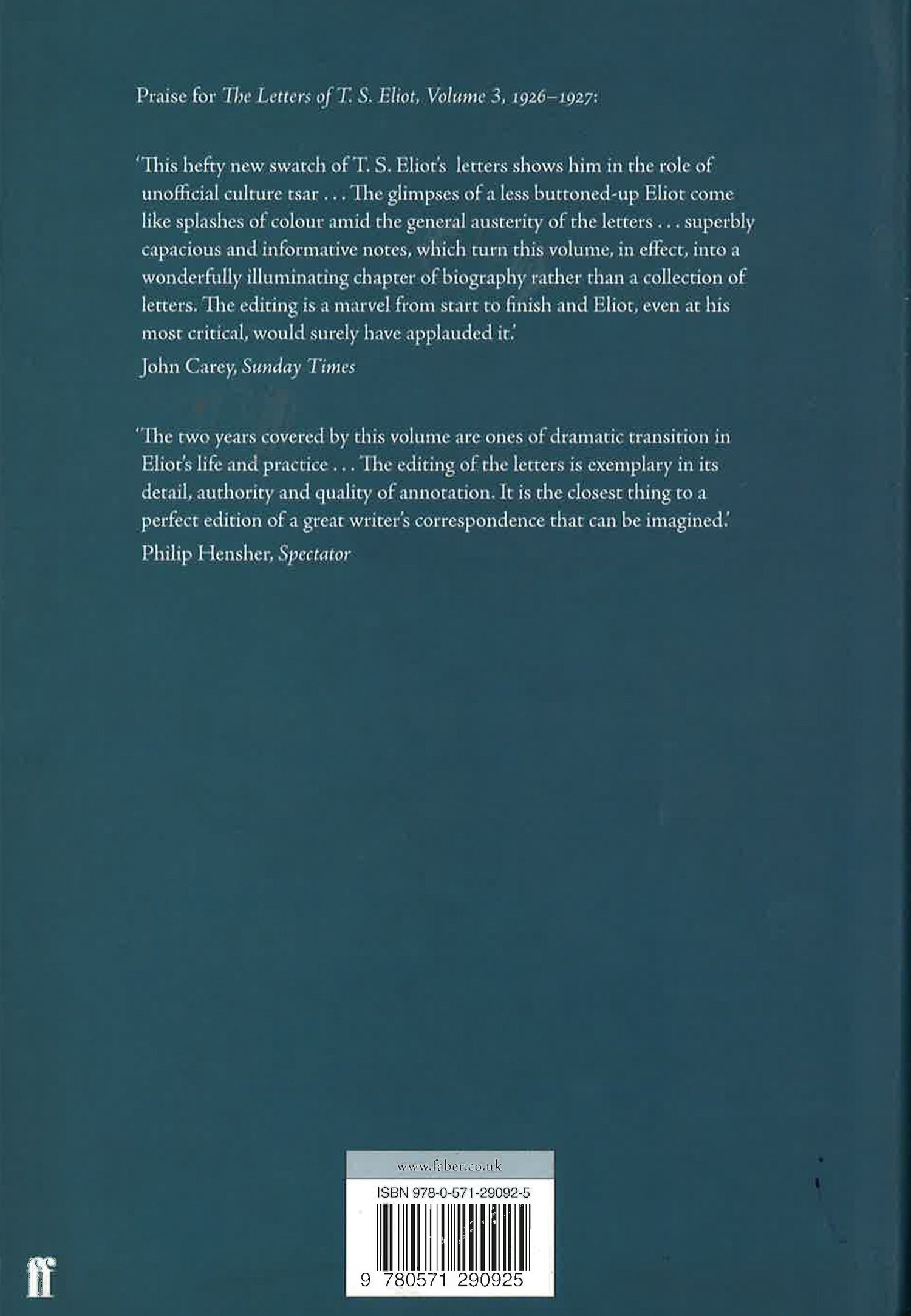 Eliot's responsibilities during this period extend to caring for Vivien, who returns home after months in a French psychiatric hospital and whom he looks after with anxious fortitude; and the personal correspondence with his mother closes with her death in September 1929.