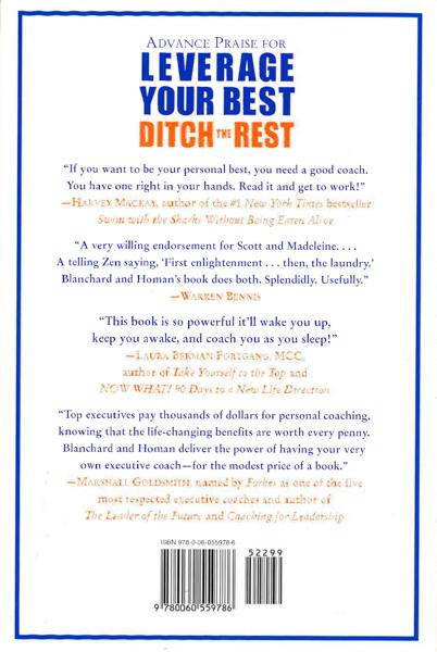 Leverage Your Best, Ditch the Rest eliminates the stupid stuff that distracts you and gets in your way. It shows you how to take full advantage of -- Leverage! -- your strengths and most positive qualities, while at the same time discarding or getting around -- Ditch! -- whatever gets in your way.