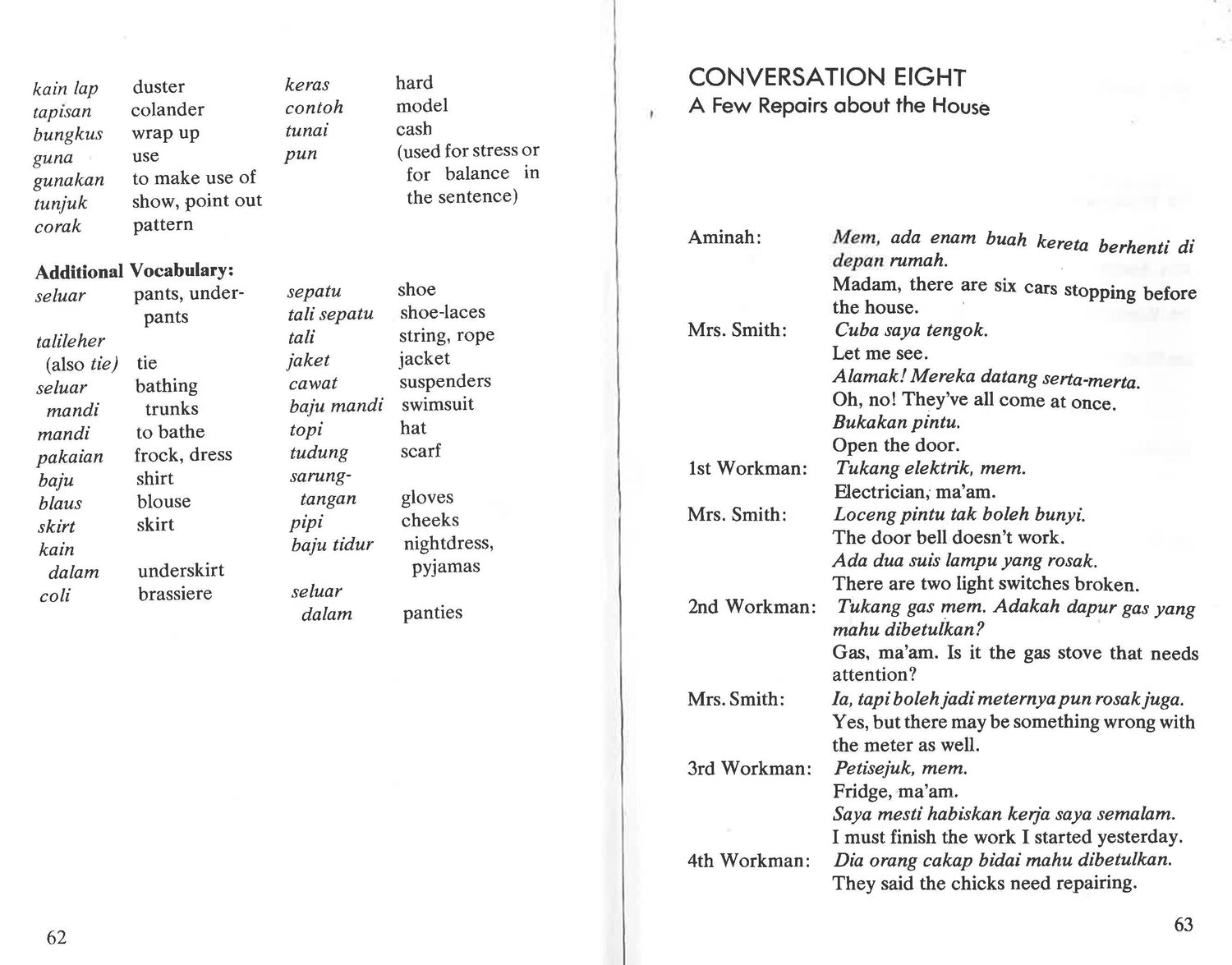 In a series of easy lessons, each consisting of a reading passage, a list of important words, notes on grammatical usage and a translation exercise, you teach yourself how to speak and write Malay efficiently