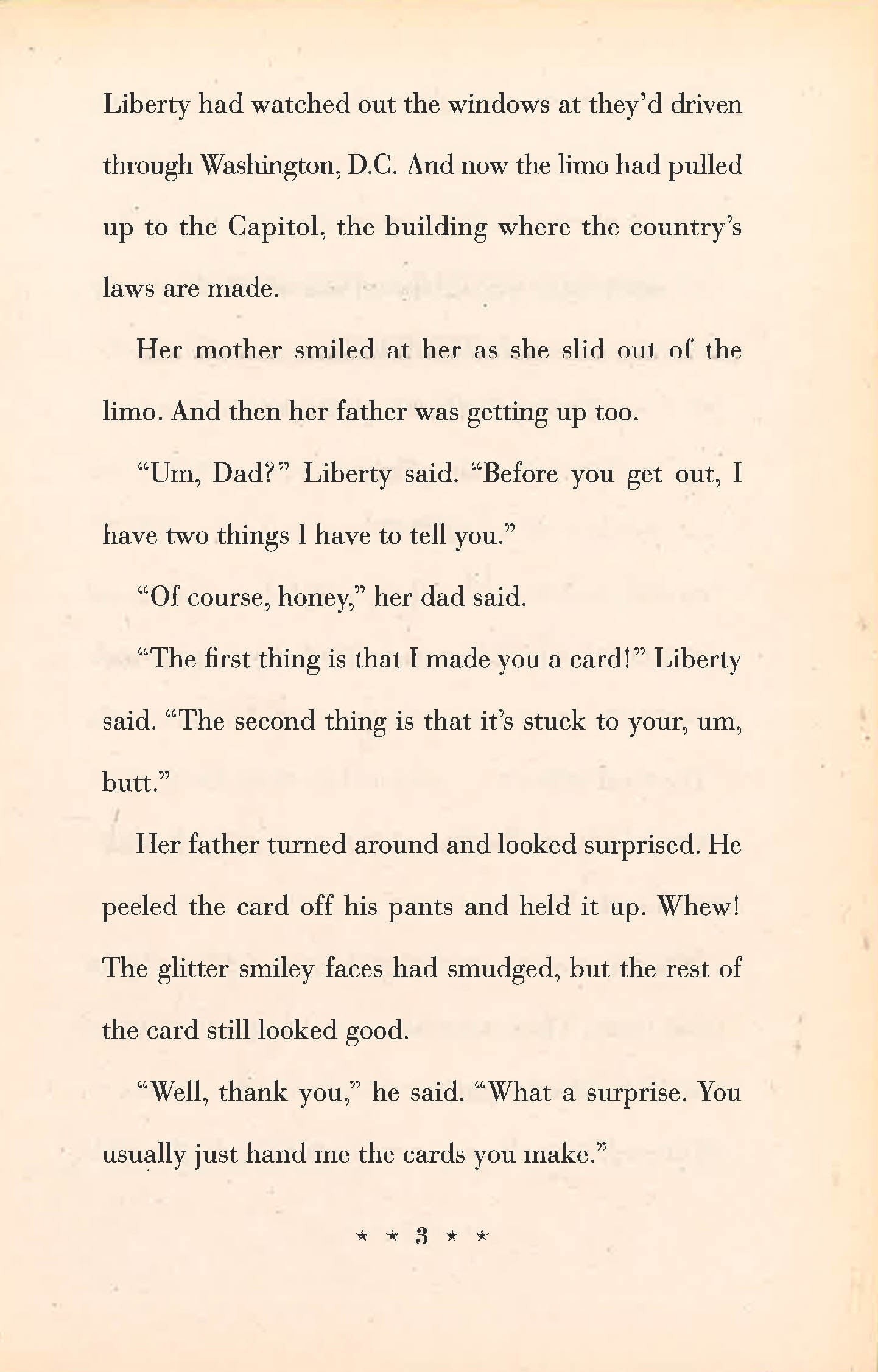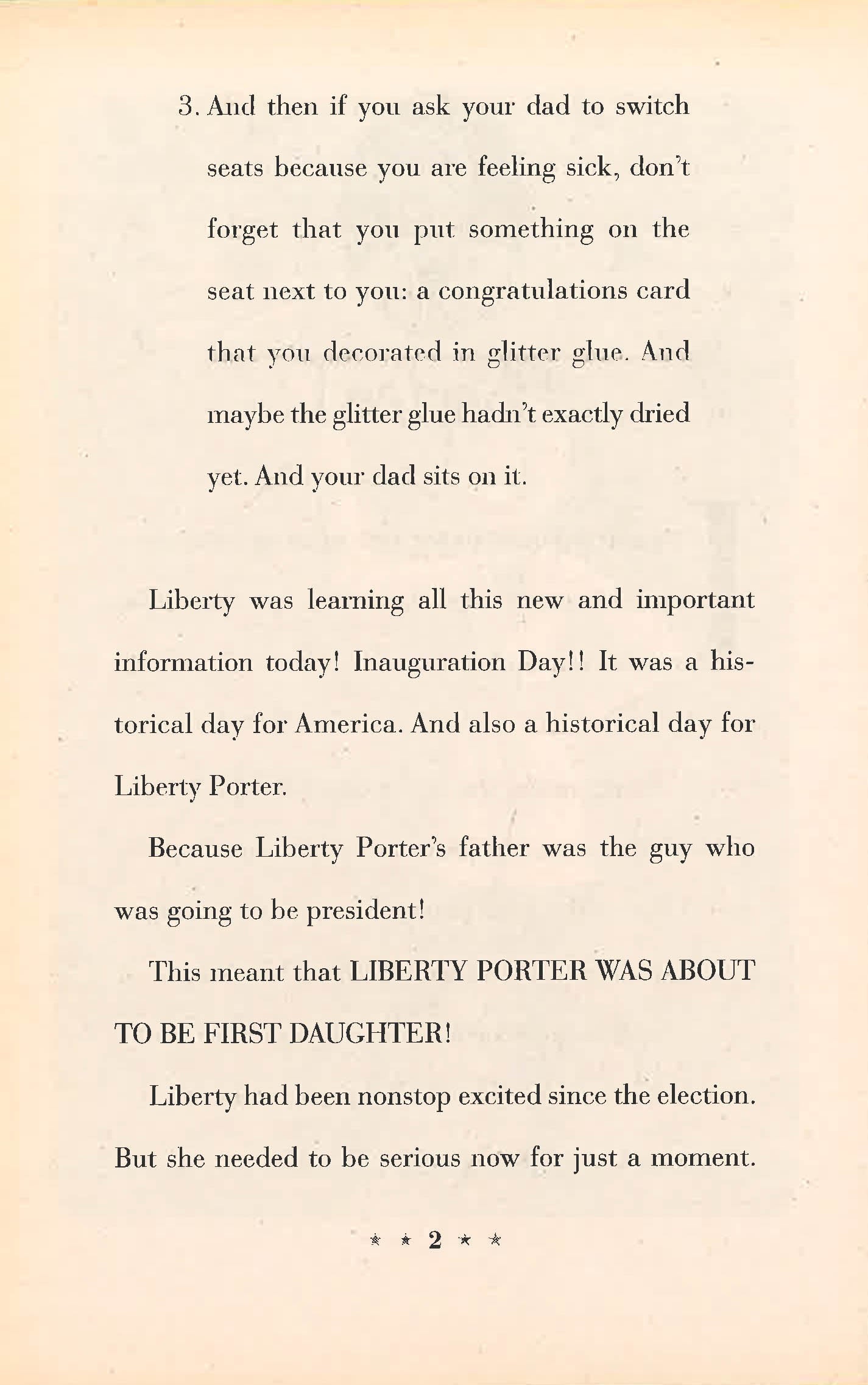 Eight-year-old Liberty Porter’s father has just been elected President of the United States - and she’s the new First Daughter! As Liberty moves into the White House, she vows to make herself indispensable to her country - but can she get past her run-ins with the Chief of Staff?