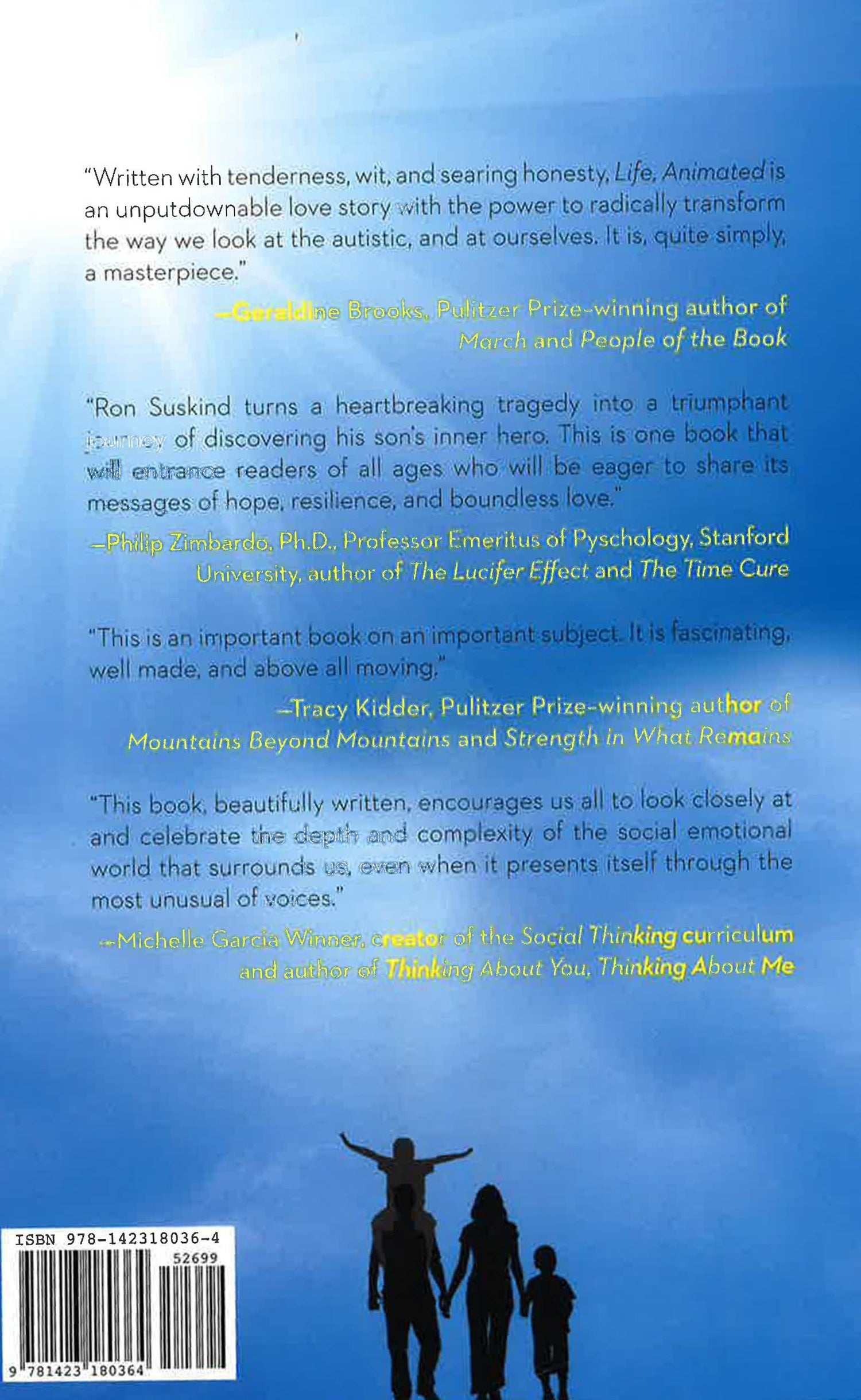 What if you were trapped in a Disney movie, and had to learn about life and love mostly from what could be gleaned from animated characters, dancing across a screen of colour? Asking this question opens a doorway to the most extraordinary of stories. It is the saga of Owen Suskind, who happens to be the son of one of America's most noted writers, the Pulitzer Prize-winning journalist Ron Suskind. He's also autistic. The twisting, 20-year journey of this boy and his family will change that way you see autism, old Disney movies, and the power of imagination.