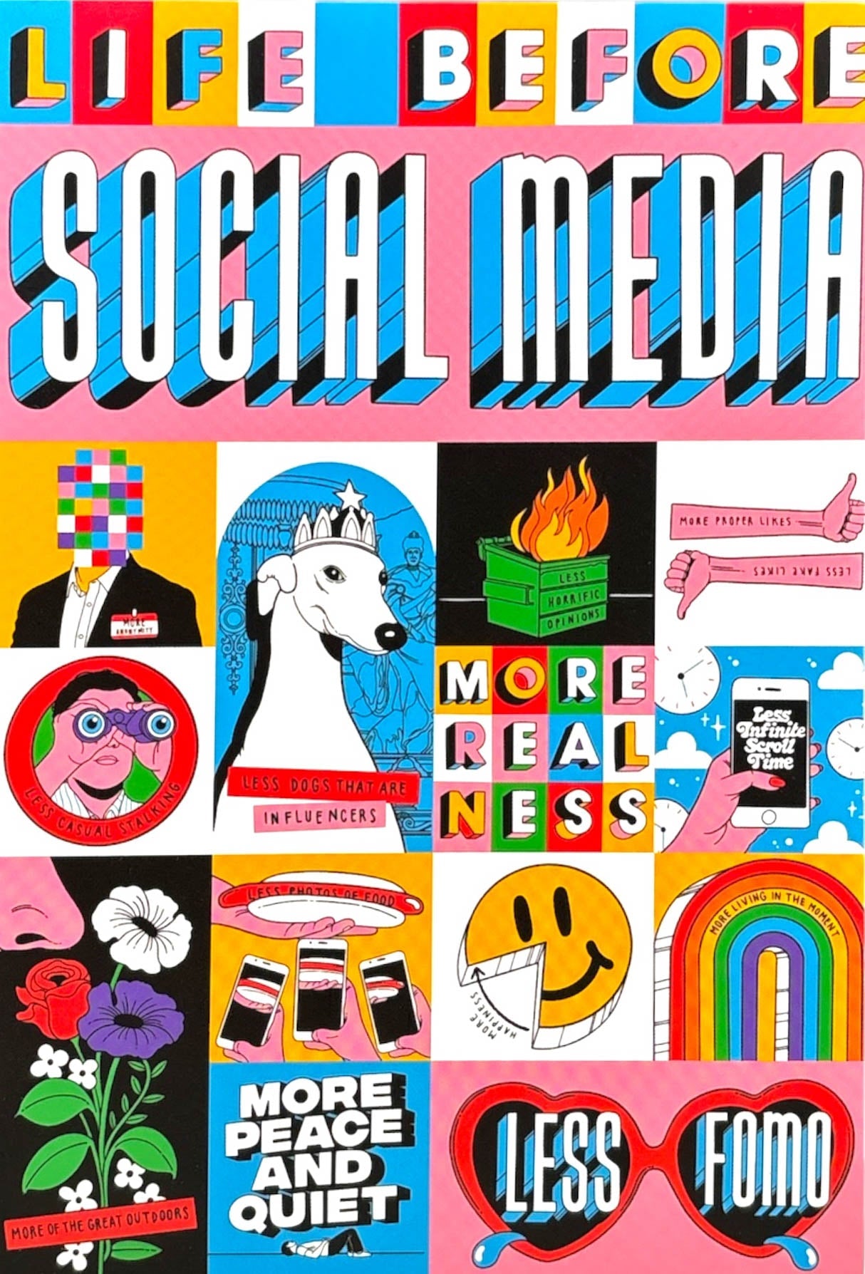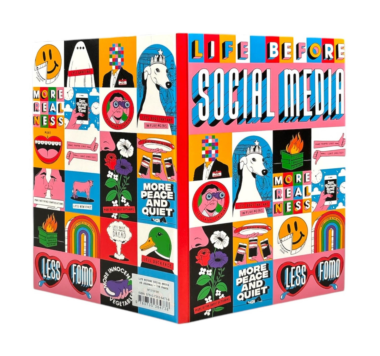 The Life Before Social Media A5 Notebook from Galison features the colorful art of Toby Triumph who reminds us what life was like before "everyone was glued to their phones 24/7." Triumph remembers what life was like back then and he did this illustration to explain it. Perhaps appropriate cover art for a notebook!